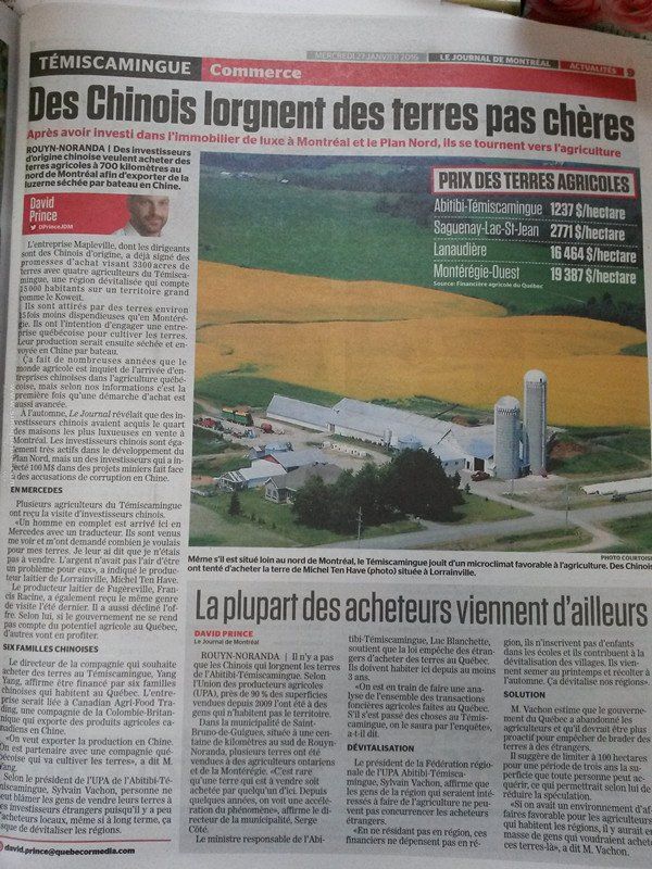 今天早上一开门看到了<蒙特利尔日报>头版的一个报道,标题是"为什么中国人买我们的土地?" 今天的文章主要说一家叫“枫城”的中国公司在北部Temiscamingue的地方买下了一片地 和一家当地公司共同种植苜蓿花,然后烘干出口中国。这本来是一件好事,促进当地经济和就业, 但是文章中却充满了猜测质疑和偏见!把中国投资者描绘成“开着奔驰,拿着钱袋子”的低价掠夺 者,强迫当地人贱卖土地。并且一而再,再而三地强调投资人根本不在当地居住,并煽动政府强制 立法,强制购买土地这必须在其地方至少住满三年等等。看完之后,大呼“我靠,我去!”。 立马给这个叫David Prince的作者发了封邮件,他还真回了,我们彼此交换了些看法,前前 后后三四封邮件。先说说我的第一封“讨伐信”,也是最长的一封: 什么叫做“我们的土地”?如果投资者也入了籍,就不存在你们我们的区别了。这不明显着挑事吗?! 话再说回来,什么叫做你们的土地?你们的土地哪里来的?还好意思说?中国人好在还是在买, 而你们的祖先却是再赤裸裸地从印第安人手里抢过来的!! 我说您的文章充满了偏见和挑动性,在经济不景气的目前这么做很危险,尤其对那些没有多少教育 又不会理性思考的魁瓜们来说,这不是煽动种族歧视吗?!中国人有钱投资,但是合法合理,该交 的税费一点儿都不少,为什么不反过来问为什么本地人不投资,不工作? 我说您应该把文章的标题改成如下: 1)为什么魁北克人没有钱?为什么魁北人不会理财投资?为什么魁北克人老爱罢工? 为什么魁北克(尤其是蒙特利尔)的失业率这么高?为什么人们不爱工作或找不到工作? 2)为什么魁北克中学的辍学率在全国最高?为什么青年人不会理财? 3)为什么魁北克经济一直疲软?是不是有什么政策阻碍了经济的发展和人们来此投资的热情? (比如臭名昭著的101法案?) 最后一个问题:我相信当地犹太人比中国人更有钱并拥有更多的投资,为什么你们报纸不去报道 并煽动?!说到这里,又是一个伤心的话题:就像每次大选一样,咱们国人不爱参与政治,入了籍 也懒得去投票,所以经济上都不错,但是政治上都是弱者。一旦有个风吹草动,就会再出一个“书 包厂事件”;一旦有变故,就又会像东南亚的华裔一样任人宰割。我几年前发表过文章呼吁入了籍 的广大国人去投票,投哪个无所谓,但一定要去投,这样人家才知道我们关心政治,关心自己的权益, 关心自己下一代的权益,这样人家才能关心我们的利益。就像自尊一样,如果你连自己的利益都 漠不关心,难道还能指望别人去关心吗?! 话说回来,那个David记者回邮件给我说他的报道不是反对中国人投资魁北克,而是说想侧面反映 当地人的焦虑--他们不想失去土地,不想多少年后背井离乡。我又回复他说,那应该走法律程序呀, 没有人拿枪逼着当地人卖房卖地,都是自愿合法的。而且现在也没有法律强制购买土地投资者必须 要在当地生活多少多少年。他说当地的老百姓正在积极联络当地政府及省议员,想通过立法限制 购买条件,比如必须在当地生活至少三年;产品不得出口魁北克以外的地方等等。 随后我又和店里的一些客人多多少少谈这个话题。只要买报纸的,或者是老客人,我都想知道他们 的看法。结果证明大部分受过教育并且会理性思考分析的人都觉得报纸是在炒作,目的就是为了 吸引眼球,为了销售而已。(我很高兴我的大部分客源的素质都很高!) 今天就这个话题想和同胞们讨论一下:你们说这片头版文章是不是有歧视和挑拨之嫌?我们该怎么 办?我当时想出了写信抗议,要求其澄清之外,更主要的是以次为警钟---经济好的时候,你好 我好都没事;经济不景气的时候,这种文章发出来难免会被人利用,难免会让我们的一些同胞成为 受害者。所以除了团结(苦笑)之外,我们应该更积极地参与政治(投票,竞选)和当地生活。只有更 好的沟通,才能更好的融入,才能更好的自我保护。 说是在要不是为了自己的孩子以后能在这里生活的好一点,我才不费事费力在这里法帖子等挨 砖呢,我才不去和人家报社理论呢。 最后一点扪心自问:大家都说中国人聪明,每个人都是一条龙,为什么聚在一起就成一条虫? 文化原因?历史原因?这个话题更沉重,我有自己的分析,以后再和感兴趣的人说吧。 |
