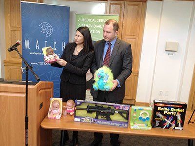 你家里有这些玩具吗?如果有的话请尽快扔掉! 大象娃娃可能会让婴儿窒息,塑料锤子可能导致孩子头部受伤,今年最危险的玩具是什么? 今天“世界反伤人玩具”(World Against Toys Causing Harm,简称W.A.T.CH)列出了今年圣诞节十大最危险的玩具。 该组织称,这些玩具代表着普遍存在的问题,并没有包括市场上所有有潜在危险的玩具产品。 2016年最危险的儿童玩具: 1.Peppa Pig's Muddy Puddles Family 危险性:可能造成窒息 2.Kids Time Baby Children's Elephant Pillow 危险性:可能造成窒息 3.Slimeball Slinger 危险性:可能造成眼睛受伤 |