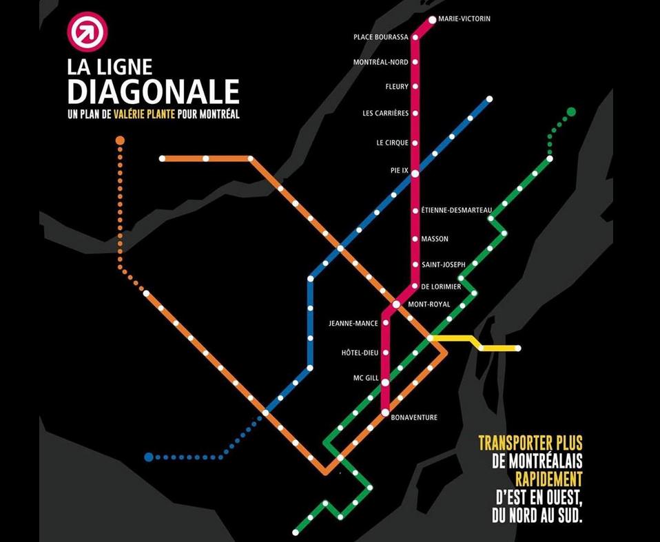 蒙特利尔市反对党Projet Montreal的党魁候选人之一Valerie Plante表示,她希望建造一条贯穿市中心至蒙特利尔北的全新地铁线。 Plante希望在12月4日当选该党新党魁,从而在2017年与现任自由党市长丹尼斯科戴尔竞选新市长,并提议建造第五条地跌线,粉色线,从目前的橙线Bonaventure地铁站开始,一直向北再次横穿橙线Mont-Royal地铁站,穿过蓝线Pie-IX地铁站,直至最北面的终点站Marie-Victorin站。 今天Plante在Facebook上提出以上计划,让蒙特利尔市民大为激动。 不过即使明年11月Plante顺利当选蒙特利尔新市长,她也没有足够权利将该计划付诸行动。 Plante说,这条被称作la diagonale的新地铁线将有助于缓解蒙特利尔地铁系统的压力,特别是高峰时段市中心东北部地区的拥堵现象,多伦多、巴黎和洛杉矶都有类似的项目。 如果明年当选,她表示将会提出该计划,之后需要联邦和省政府的批准,当然最重要的还是资金问题。