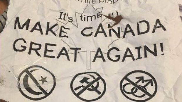 近日蒙特利尔麦吉尔大学校园内出现了反穆斯林和反同性恋的海报,并呼吁“make Canada great again”(让加拿大再度伟大),引起了学生和老师的担心。 这张海报模仿了特朗普在美国总统大选期间的宣传口号“Make America Great Again”,背景是一片枫叶,有反穆斯林、反共产主义和反同性恋的符号。 传单上还有一个白人至上的网站地址,要求人们登录签名。 麦吉尔大学四年级学生Michelle Li表示,她刚看到传单时的第一反应是,一个拙劣的玩笑。她指出,这让我们明白很多人的内心对一些事情并不赞同,但是可怕的是人们竟然明目张胆地把它贴在那里。 加拿大麦吉尔大学研究所负责人Andrew Potter认为,即便这是一个玩笑,也应该引起人们足够的注意和警惕。 麦吉尔校方发言人表示对海报的事情并不知情。