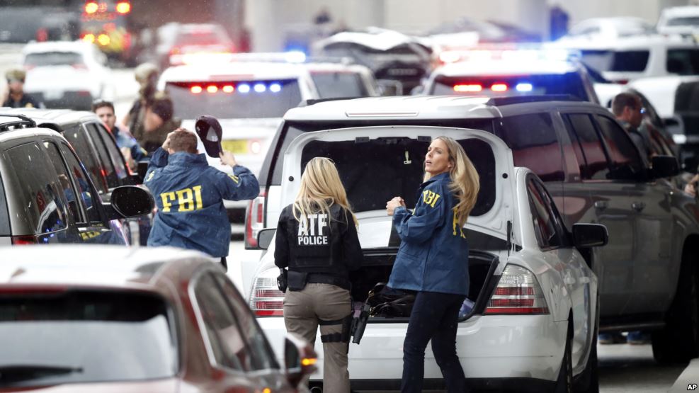 美国联邦调查局说,它不排除劳德代尔堡-好莱坞国际机场周五发生的致命枪击案为恐怖活动的可能性。联邦调查局特工乔治·皮罗周五晚在一个新闻发布会上说,该机构正在追查包括恐怖主义在内的每一个可能的线索。 扣押嫌疑人的执法官员说,此人名叫艾斯特班·圣地亚哥,现年26岁,来自阿拉斯加州。他周五从阿拉斯加州主要城市安克雷奇飞抵佛州机场。 据信,他在被抓捕之前,在机场开火,打死5人,打伤8人。皮罗说,枪手有一把半自动手枪。 据报道,这名单枪匹马作案的嫌疑人是曾在波多黎各服役过的前国民警卫队队员。去年,他主动到住院接受精神健康检查。据他本人称,他有幻听,有些声音告诉他加入伊斯兰国恐怖组织。 圣地亚哥2010年和2011年在伊拉克服役10个月,之后加入美国面积最大和离美国本土最远的阿拉斯加州的国民警卫队。据信,他从2014年开始在那里服役,直到去年8月他因为表现不尽如人意而被退役。执法官员还说,他曾在安克雷奇一家保安公司工作过一段时间。 这起致命的枪击案发生后,机场因接受调查而被关闭。入境飞机被转到其它机场或留在始发地,有些飞机虽已抵达机场,但乘客仍留在飞机上。 奥巴马总统星期五对美国广播公司说,他为这起枪击案感到痛心。他说:“在我担任总统的这些年里,这类悲剧频频发生。受害人和目击者所经历的痛苦、悲哀和震惊一定是巨大的。