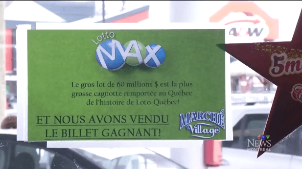 上周五晚上Lotto Max开出6000万头奖,这张彩票在魁省一个不到2500人的小镇上售出。 据报道,这张彩票在魁省小镇的一家超市Marché du Village卖出,作为卖出获奖彩票的商店,该超市也会获得总奖金1%的奖励,也就是60万元。 该超市老板Yuhan Roy说,钱好像忽然从天上掉下来一样,让他们欣喜若狂,超市已经在小镇上开了50年,还是第一次卖出中大奖的彩票,他已经想好如何和店员一起庆祝了。 据悉,中奖者为一名男子,一次性购买了20张彩票,全部是送给家人的礼物,周六兑奖时发现中奖,当时店主比该名男子还激动。