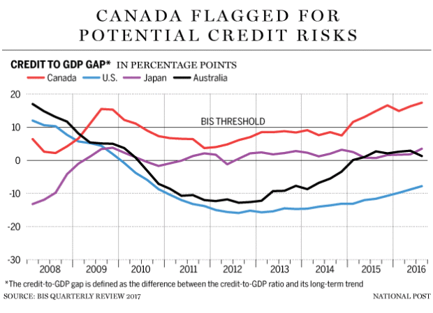 全球顶级银行机构的一份最新报告警告,加拿大和中国是全球面临金融危机风险最高的国家。 国际清算银行本周一发布的季度报告指出,根据信贷、房价与GDP的比率,以及预期利率上调,加拿大等一些国家已经出现金融危机的初步警告性征兆。 国际清算银行由60个国家地区的中央银行或金融管理当局组成,被称为“央行中的央行”,董事会成员包括前加拿大央行行长、现任英格兰央行行长Mark Carney。 该报告指出,自2016年9月以来,加拿大与亚洲一些国家的信贷缺口(信贷占国内生产总值比率,credit to GDP gap)在扩大。 在去年秋季的报告中,加拿大被认为是发达国家中信贷占国内生产总值比率最高的。 最新报告称,加拿大“异常高”的信贷缺口威胁到本国的银行系统。 根据报告,加拿大信贷占国内生产总值比率上升至17.4%。这一指标超过10%就被认为过高,受到密切监视。 全球只有中国的信贷缺口更高,为26.3%。 报告称,全球三分之二的银行业危机,是发生在信贷缺口超过10%之后的三年。 国际清算银行的报告也表示,该指数并不代表加拿大或其他高负债率的国家一定会出现金融危机。这完全要看各国的具体情况,包括利率、借债人的行为等。 不过,债务水平过高,会导致经济更易受负面冲击的影响。 国际清算银行的报告发现,如果利率上升250基点,加拿大借债人的负债额将成为全球第二高,仅次于中国。 加拿大过高的房价一直被认为是导致家庭债务增长的主要原因,市场普遍质疑,一旦利率从长期低位回升,消费者是否有能力应付全部的负债。 报告也警告,全球经济的增长越来越依重消费者支出,如果这种支出是由债务支撑,将导致经济放缓。 加拿大从上一次金融危机中复苏,主要是依赖消费的拉动,目前家庭债务水平已经升至七大工业国家之首。 加拿大中央银行在去年12月的年度报告中强调了金融体系的关键性脆弱因素,包括家庭债务过高,房地产市场不平衡,以及固定收入市场流动性不足。不过,央行也表示,政府去年推出的房屋按揭新规将可以缓和这些脆弱因素。 |