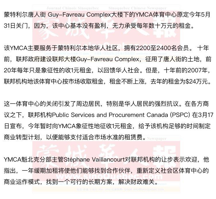 与此同时,YMCA的华裔会员Phil Chu最近在www.change.org发起了一份请愿书“SAVE YMCA GUY FAVREAU GYM/CHINESE COMMUNITY CENTER”,希望这间YMCA可以继续开放,为华人社区居民服务,截止3月17日,该请愿书已经收集了2600多个签名。