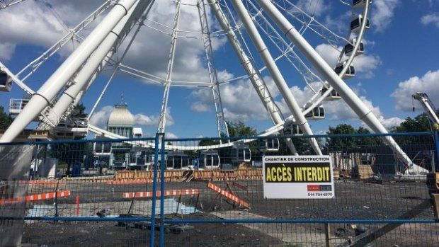 蒙特利尔老港摩天轮的开放时间再次被推迟1个月,至8月底。 今天4月份该项目被公布,原本预计在6月底完工,但是由于今年雨水多,以及5月份的罢工导致施工被延误,6月底官方宣布推迟至本月底开幕。 近日官方再次宣布延期一个月完工。 很多市民对于摩天轮的一再延期表示了失望。 目前摩天轮的主体部分已经完成,60米高的摩天轮上设有42个座舱,完工后人们可以在上面360度欣赏蒙特利尔的景观,另外摩天轮上的1800盏灯光会让它成为蒙特利尔夜晚最美丽的一道风景。 据悉,摩天轮票价为$25,每次15分钟。 摩天轮由荷兰公司建造,造价2700万元,将在Ile-Bonsecours岛上运营五年。