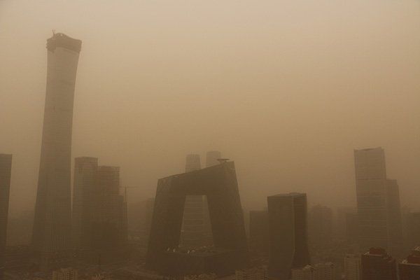 2018年3月28日,北京朝阳区CBD核心区。视觉中国图 3月28日,PM10取代PM2.5成为北京市大气主要污染物,由霾天气转为沙尘天气,北京市大部分地区能见度1-3公里。28日上午8时,北京市PM10浓度达到1896。 据北京市气象局消息,截至28日上午6时30分,北京市朝阳区、密云区等15个城区先后发布沙尘蓝色预警称,当地将出现浮尘天气,能见度较低,请注意防范。 ![]() 沙尘天气是指强风从地面卷起大量尘沙,使空气混浊,水平能见度明显下降的一种天气现象。 沙尘天气分为浮尘、扬沙、沙尘暴三类。 均匀悬浮在大气中的沙或土壤粒子使水平能见度小于10公里,这样的天气被称为浮尘天气。这些沙尘是当地扬沙,或是沙尘暴天气结束后残留于空中,但大多来源于外地。 扬沙是风将地面尘沙吹起,使空气相当混浊,水平能见度在1公里到10公里之内。 而沙尘暴的水平能见度小于1公里。当水平能见度小于500米时,定义为强沙尘暴。 ![]() 根据1951年以来北京观象台沙尘资料统计分析,20世纪50年代我市沙尘最严重,春季沙尘日数平均多达26天;60年代至80年代,沙尘日数有所下降,在10~20天之间波动;90年代以后明显下降,沙尘日数平均不到5天;2001年-2010年又略有增加,平均在7天左右;2010年以后(2011年-2016年)平均沙尘日数在3天左右。从气候变化趋势看,北京春季沙尘天气仍处于年代际偏少的气候背景下。北京常年(1981-2010年)3月份平均沙尘日数为2.2天,同期历史最多12天(1954年)。 北京市气象局称,近期北方地区降水偏少,气温偏高,气象条件有利于沙尘天气的生成。 |
