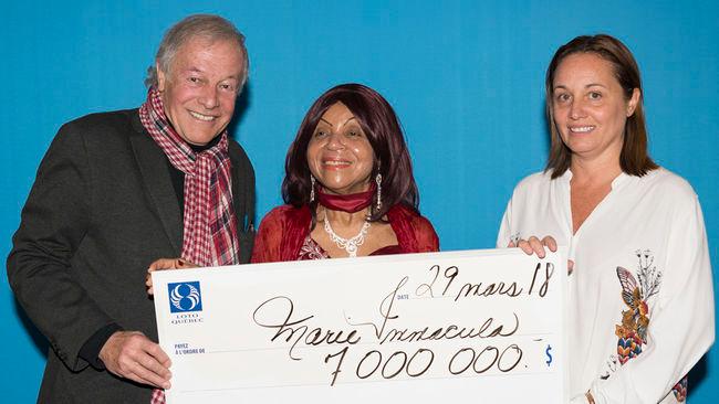 魁北克乐透公司终于与一位彩票大赢家取得了联系。 魁北克省Lanaudiere地区的Marie Immacula Lafalaise赢得了Grande Vie的彩票大奖。 她赢得了每天$1000的终身大奖,但她选择一次性领取$700万元。 这张彩票在St Jean sur Richelieu购买,售出这张彩票的老板获得$70,000。 Lafalaise和家人一起领取了支票。 这张彩票在3月8日开出。 |
