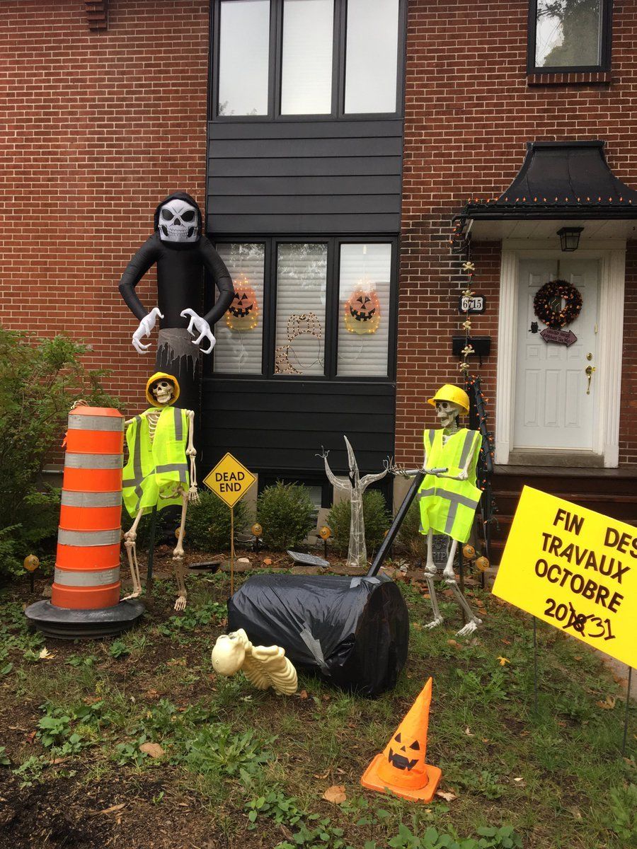 万圣节即将来临,许多蒙特利尔人都在忙着布置自己的房子,其中NDG区的一所房子的装饰,肯定会让你尖叫,因为它真的很“可怕”。 住在Monkland的Jean-Francois Cloutier和他的家人创造了一个以建筑工人为主题的万圣节装饰。包括穿建筑工人背心正在忙碌的骷髅人,一个骷髅人正在被“压路机”碾过,一个真正的橙色交通锥,和一些标识等。 他说,我们认为这将是一个很好万圣节主题,NDG的道路施工太可怕了,所有人都在抱怨。 另一位邻居表示,这就是典型的蒙特利尔,我们的施工季节太长了。 Cloutier说,每年制作精美的万圣节展示已经成为了家庭的传统。