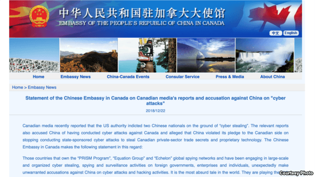 中国政府反驳有关中国对加拿大网络系统进行攻击和间谍活动的指责,并暗指大规模、有组织实施网络窃密的国家是美国。 中国驻加拿大大使卢沙野2018年12月14日出席一个活动(路透社) 中国驻加拿大大使馆星期六(2018年12月22日)发表一份声明说,中国是网络攻击的受害者,而不是作恶者,称如果加拿大遭受网络攻击,“攻击者决不是中国,而是另有其人。” 一天前,美国司法部在新闻发布会上说,受雇于中国政府的黑客组织“APT10”在过去数年入侵多个国家,盗取知识产权和其他机密信息,这些国家包括美国、加拿大和英国等至少11个国家,受害公司的行业涉及金融、电信、制造、医疗保健和生物科技等。 在司法部作出这项宣布时,包括加拿大在内的美国多个盟国几乎同时对中国政府的黑客行为公开予以谴责。 加拿大通信安全机构(CSE)在一份声明中说:“几乎可以肯定是,与中国国家安全部有关联的人员要对早在2016年开始网络系统遭到入侵的事件负责。” 加拿大环球邮报还引用加拿大公共安全部部长古德尔(Ralph Goodale)的话说,中国违反了2017年与加拿大政府签署的反网络间谍协定。在那份协定中,中国答应停止政府支持的目的在于偷窃加拿大私人企业商业机密和技术的网络攻击行为。 中国驻加拿大大使馆在声明中拒绝接受加拿大媒体对中加反网络间谍协定的描述。声明说,中国从未对加拿大从事过国家支持的网络攻击行动,更谈不上向加方承诺停止这些活动。 除了美国和加拿大之外,英国、澳大利亚和新西兰也都发表声明,指责中国的网络攻击行为。 |