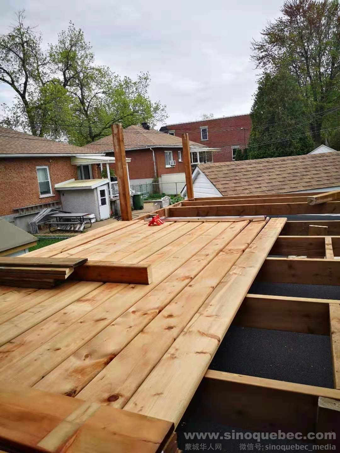 一层的小房子屋顶找平后建deck,连接二楼阳台开通,建完后再做屋檐排水沟,房子瞬间多出几百尺