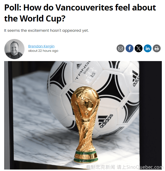 随着2026年 FIFA世界杯临近,作为加拿大主办城市之一的温哥华,城市氛围却显得有些“冷”。一方面,这项全球最受关注的体育赛事正在逐步进入倒计时阶段,世界杯奖杯巡展也已经来到本地,比赛将在今年6月和7月举行; ......