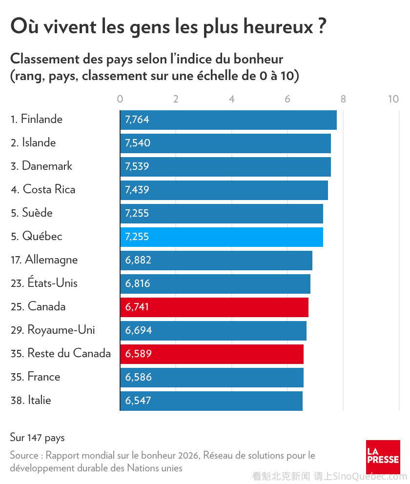 每年,大学研究人员都会根据公民对生活质量的自我评估(通过 Gallup 公司的调查),对全球 147 个国家的人民进行排名。最新出炉的《世界幸福报告(World Happiness Report)》显示,在幸福感方面,加拿大确实由“两 ......