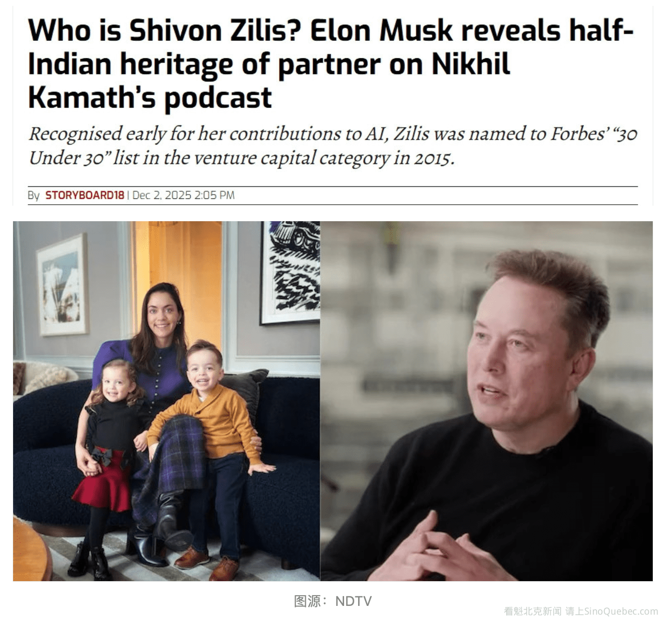近日,特斯拉与SpaceX的CEO 埃隆·马斯克(Elon Musk) 公开表示,他的伴侣Shivon Zilis有一半印度血统。马斯克在Zerodha创始人Nikhil Kamath的播客节目“WTF is?”中透露,他与Zilis的其中一位儿子,中间名为Sekhar ......