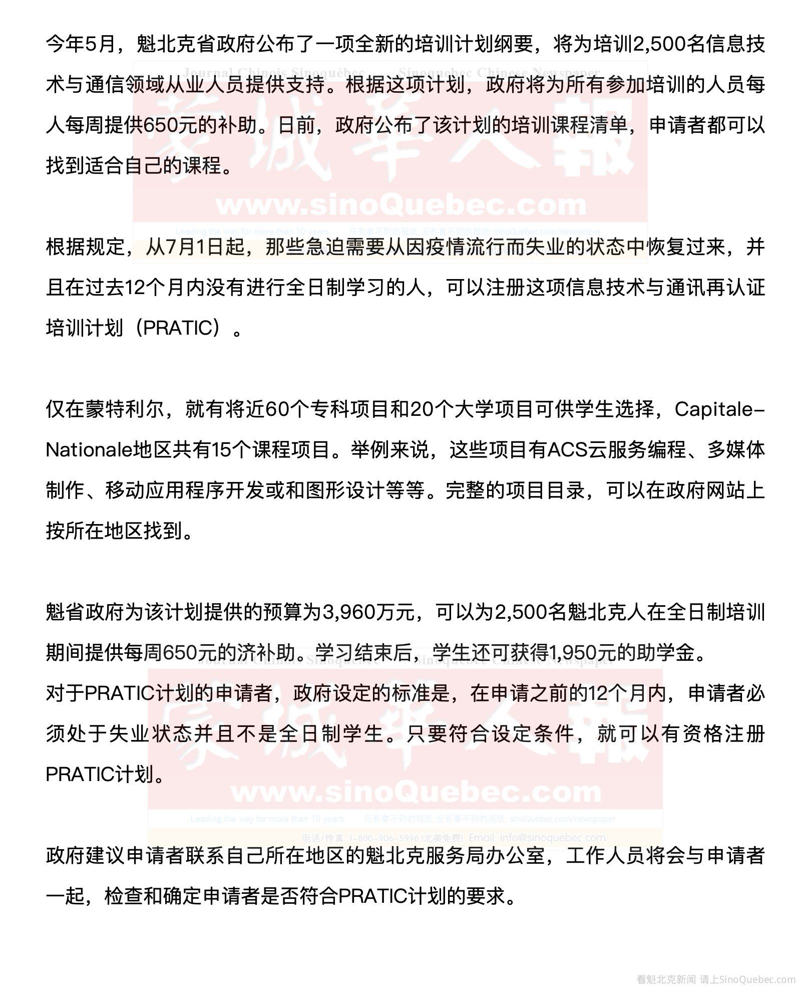 从相关的学院或大学课程、专业证书、大学学习证书 (AEC),到专业学习文凭(DESS),这项计划总共开设了142个培训项目,等待学生申请。名录可见政府网站: https://www.quebec.ca/emploi/planification-et-gestion-de-carriere/formation/programme-requalification-accompagnement-ti-communications/liste-formations-admissibles |