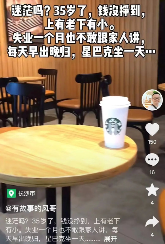 上一轮被裁的人还没被市场接收完,新一轮大规模裁员的消息早已甚嚣尘上。眼尖的人发现,一批已经失业或即将失业的中年人,在没有面试可去、又不想在家闲坐之时,选择把星巴克给占领了。 ![]() 在星巴克,如何判断一个人是不是失业?在里面坐的时间长了,这些失业者大多已经掌握了一套甄别同类的方法论—— 这些人总在工作日的固定时段出现,进门找个不打眼的角落圆桌,一待就是几个小时。他们还穿着厂里发的文化衫或衬衫,背着黑色背包,打开了mac book,但始终和电脑保持着貌合神离的互动。 “看课程、看工作、看基金、放空和微信聊天同时进行……那这个人,多半跟我一样,也没工作呢。” 曾经的星巴克,是高端商务的不二之选,是初代轻奢的办公场景。那些落地玻璃内手持电脑的人,可以把整个星巴克当成了自己的临时办公室。在这里悠哉喝一杯咖,是一个大城市奋斗白领的标配。 ![]() 在星巴克里办公,就是成功的浓缩具象。努力奋斗的全部意义,就是有朝一日,能成为一个坐在星巴克里的高级白领。 如今占据着星巴克的,或许还是那一批人。不同的是,他们以前聊创业项目,现在在聊失业补偿和怎么续社保;以前在这里拼命上班,现在则是在假装上班。 ![]() 作为公认的职场模糊地带,星巴克是失业的中年人掩饰尴尬的绝佳借口。“如果遇到了熟人,大可以说我在见客户或者加班。”听听隔壁桌的商务男女聊的最新业务,还能顺便为下次面试增加点谈资。 这也是失业者联盟最理所应当的聚集地。一杯美式的钱,就能买断一整天的独处空间。带插座的工位、全天候的冷气,提供了办公和放空都需要的舒适条件。 更重要的是,只有在星巴克,你不必担心偶遇突如其来的关怀。大家彼此之间都有不用开口说话的默契,某种程度上又能隔空相伴。“原来大家都这样。” ![]() 星巴克永远不会问一个人,你进来是干什么的——这意味着你干什么都可以,也可以什么都不用干。对失业的人来说,这里承载的不再是职场精英的骄傲,而是他们寻觅已久的一丝喘息。 和午夜的烧烤摊、酒后的拉面馆一样,星巴克也成为失业的中年人假装上班、隐秘又公开的去处。 ![]() 在星巴克假装上班,一般会经历三个阶段。 起初,你会像从前在这里加班时那样,花30块买下一个大杯美式,模拟曾经的职场生活。 后来,你失业久了,开始关注预算,就研究起了星巴克的团购,琢磨着怎么样便宜地买上一杯。 最后,你发现即便不消费,星巴克的大门也永远向你敞开,“就啥也不点了,还会带个保温杯去续个热水。” ![]() 第3个阶段,35岁的长沙人风哥在失业的那3个月里,就曾体验过。 他其实没有什幺喝咖啡的习惯,也舍不得买拿铁的30多块钱。于是每次去参加完面试,都会在便利店先买瓶冰红茶,再在面试单位附近找家星巴克,一直到傍晚再回家。 “坐在星巴克里发呆玩手机,也比回家好。回家要么谁都没在,空落落的;要么父母会用‘那种眼神’望着你。” ![]() 失业之后,生活圈似乎自动就与还有工作的人划上了一条界限。那段时间里,风哥的社交生活,也多半是和其他失业的朋友一起,带着自备的饮料,在星巴克里聊聊最近找工作的动态。 “都是不怎幺喝咖啡的人,结果失业之后去星巴克去得比上班的时候还勤。” 深圳的财务分析师小哇,3个月前被公司优化后,几乎工作日都在星巴克待着。 她用星巴克作为自己继续规律生活的坐标:每日中午出门,到星巴克点一杯抹茶星冰乐,就着一台ipad,一直坐到下午5点再回家做饭。 “有人问,怎么失业了还有钱去星巴克啊?”但其实,对没了固定收入的前白领说,星巴克才是“量价比”最高的地方。 在星巴克,豆子是现磨的,杯量也足够撑上一个半天,口味不算出色但胜在稳定不会出错。“毕竟在寸土寸金的大城市里,你已经很难找到一个30多块钱,就能心安理得坐一天的地方了。” ![]() 更重要的是,在这里方便隐形,“容易融化在人群里”。在星巴克,几乎没有陌生人互相攀谈,狭小的桌椅就是天然的社交隔板。半自助式的营业形式,让你只要离开了吧台,服务员就再也不会管你。 而你也能一眼看出,那些对着电脑心猿意马的人大概率跟你是同类,也就和这群“同事”互不拆穿,心领神会。 小哇的ipad里,装的是在淘宝上买的财务课程。虽说是待业充电,但烦躁持续裹挟着自己,实际上常常几天过去还在同一章。“下午3点前会看一看基金,连续3个月都是绿的。” ![]() 失业的情况,她没敢同步家人和朋友,人生低谷最怕别人嘘寒问暖。索性独自来星巴克,以避免负面情绪的突然袭击。 她同时也在积极找工作,600多份简历都是在星巴克的桌面上投出去的。一开始是财务方向,不敢要求以前的薪资,过万就可以;后面越投越不报希望,新手干的岗位也投。 但面试了十几家之后,她至今还没上岗。“很多小公司单休、不交公积金,大公司又没有招聘名额,各方面相对合适一些的,又有很多嫌我未婚未育。” 在没失业前,小哇原本计划着今年在深圳买房,都快凑够首付了。但失业后,她彻底放弃了买房生娃的计划。 在星巴克待着的时候,类似的焦虑并没有少一些。“你会羡慕那些来星巴克真的有事业和工作可谈的人。而我在最好、最年轻的时候就这么低迷,不知道以后怎么办。” ![]() 对一部分中年失业者来说,失业了还要去星巴克,纯粹是一种习惯的延续,和放不下昨日的体面。 今年3