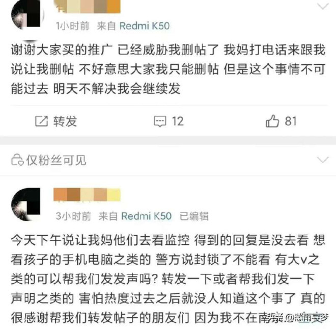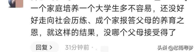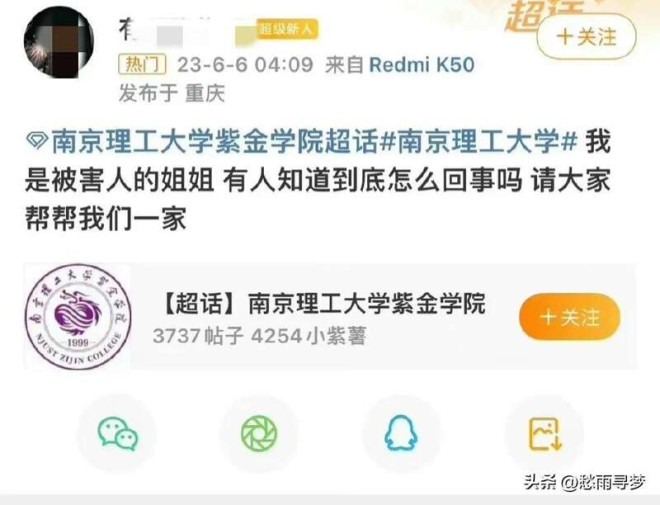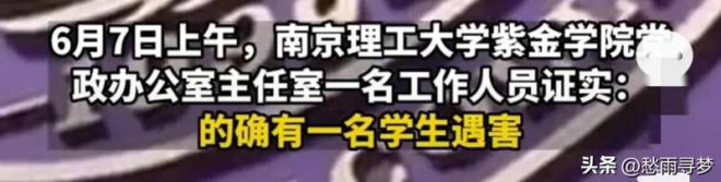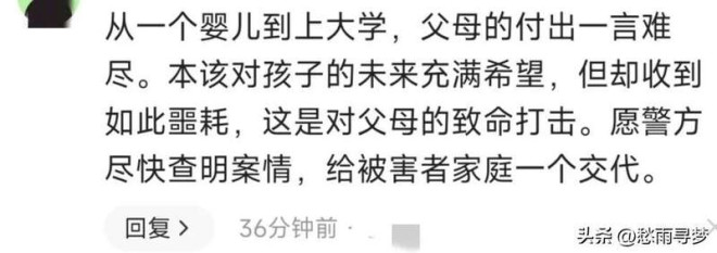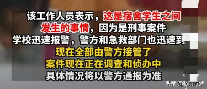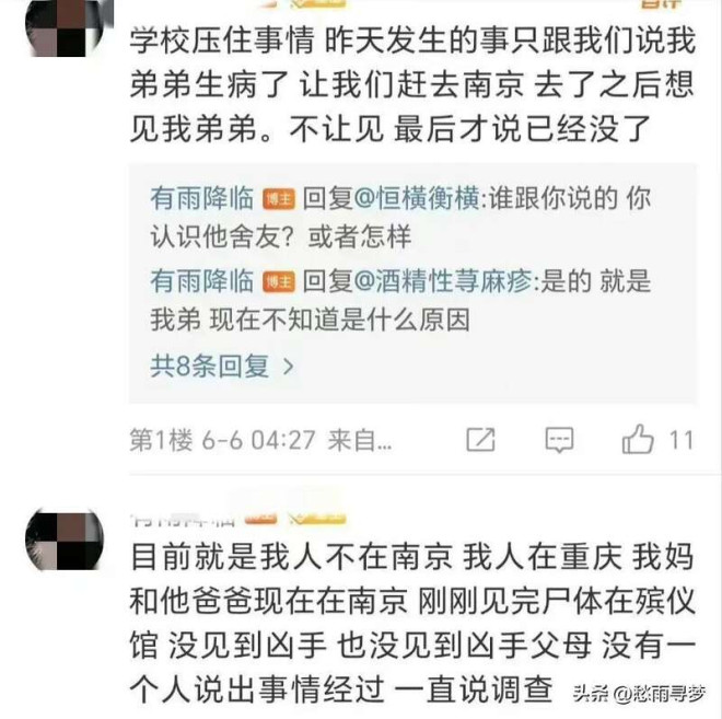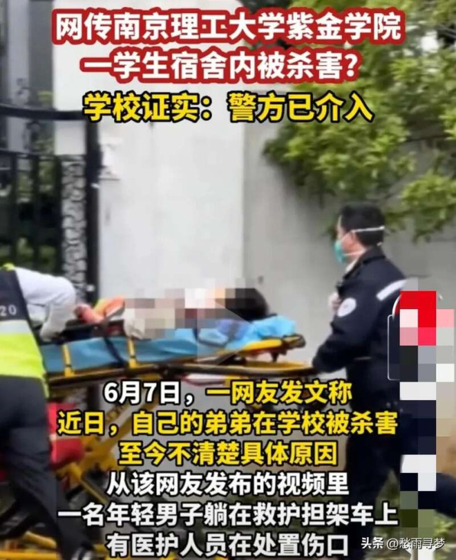 6月7日上午,潇湘晨报记者联系到南京理工大学紫金学院党政办公室主任室的一名工作人员,他证实的确有一名学生遇害。 该工作人员表示,这是宿舍学生之间发生的事情,因为是刑事案件,学校迅速报警,警方和急救部门也迅速到位,现在全部由警方接管了,案件现在正在调查和侦办中,具体情况将以警方通报为准。 6月7日,一女子在网络上发文,称自己弟弟在学校里遇害了,但是她并不知道凶手究竟是谁,也不清楚具体的原因。 但据该女子发布的视频显示,确实有一名男子被好几个人用担架抬着,他躺在担架上一动不动,还有医护人员在为其处理伤口。 ![]() 图片来源于网络,侵权删 随后,学校相关部门的工作人员表示,南京理工学院确有一名学生遇害,其表示这是学生宿舍内发生的事,目前已报警,警方正在介入调查。 ![]() ![]() 图片来源于网络,侵权删 遇害者姐姐为了能知道弟弟被害的真相,于是在网络上发文求助,她想知道事情到底是怎么回事?真相究竟是什么?希望大家能帮她一把。 ![]() 图片来源于网络,侵权删 遇害者姐姐说学校在压这件事情,在事情发生后校方只与他们说弟弟生病了,让家人都赶去了南京,结果校方一直不让见面,最后才知道已经遇害了! 事发当日,姐姐还在重庆,父母已经赶去了南京,在殡仪馆只见到了弟弟的尸体,并未见到凶手及其父母,没有人告诉他们事情的真相,只是一直说在调查。 ![]() 图片来源于网络,侵权删 遇害者姐姐表示,她父母被通知看监控,没看成,想看弟弟的电脑手机之类的,也没看成,希望有人能帮她发声和转发,她害怕热度过了就不了了之了。 不久后,遇害者姐姐的话就被证实了,确实有人在打压此事,她被人威胁删帖了,她说她妈妈打电话给她,让她删除,但是这件事如果不解决,她就继续发帖。 ![]() 图片来源于网络,侵权删 该事件一经爆出,网友们议论纷纷,有网友表示,一个家庭培养成一个大学生太不容易了,还没进入社会历练,报答父母的养育之恩,就这样的结果,没有父母能够受得了的! 还有网友表示,从一个婴儿到上大学,父母的付出一言难尽,本来对孩子的未来充满希望,却收到如此噩耗,这对父母来说是致命的打击,希望警方尽快查明案情,给被害者家庭一个交待。 ![]() ![]() 图片来源于网络,侵权删 对于这件事,我赞同网友们的观点,一个孩子培养到上大学,作为父母真的太辛苦了,好不容易熬出头了,却要经历白发人送黑发人的痛苦,这在谁身上都难以承受。 对于近来频发的校园事件,也引发了我们对安全教育的思考,对此,学校应该重视其安全教育,生理和心理方面都需要教育,不定期地对学生进行心理疏导,尽量减少此类事件的发生。 最后,希望警方能够尽快调查真相,给受害者家属一个交待! |