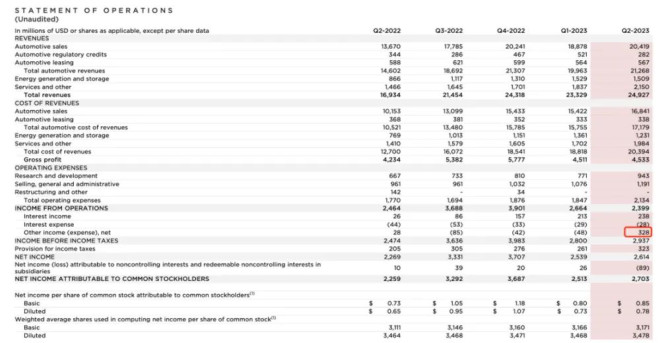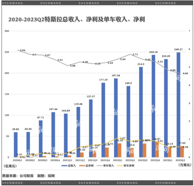 “我对特斯拉的长期价值充满信心。”特斯拉CEO马斯克建议现在买入特斯拉股票,“我认为特斯拉价值有望达到现在的5倍,甚至10倍。” 据《深网》观察,马斯克对特斯拉估值的信心或来源于三个方面:2023年二季度超预期的财报数据及今年180万辆的销量预期;人形机器人Optimus;新人工智能公司xAI。 7月20日特斯拉发布的2023年二季度财报显示,特斯拉在今年二季度销量及营业收入均创新高,每股收益(EPS)更是在一季度减超20%后猛增20%。 持续的降价带动了销量但也在不断侵蚀特斯拉的毛利率。二季度特斯拉营业利润为23.99亿美元,同比下降3%,环比下降9.9%。二季度毛利率为18.2%,为16个季度以来最低水平。 ![]() 华尔街投行对毛利率下降早有预期,投行韦德布什(Wedbush Securities)的分析师Dan Ives认为二季度是特斯拉通用毛利率的低谷季度,未来几个季度毛利率将回升,并在2024年回到20%的水平。深水资管执行合伙人Gene Munster也认为“特斯拉CFO会告诉我们,预计今年下半年的毛利率将不断提高。” 然而,在财报电话会议上,马斯克并没有给出华尔街想要的答案,他称未来特斯拉或许还将继续降价。 “购买新车是一个重大的决定,因此每当经济存在不确定性时,人们通常都会暂停购买新车。”马斯克称,利率环境不好,汽车价格变相提高,如果利率再进一步大幅上升,特斯拉必须降低汽车价格,让消费者能够承担购车花销。 马斯克愿意牺牲盈利能力来换取销量,他认为这一战略显然是有效的。 最新财报显示,由于外汇汇率的影响,特斯拉获得了3.28亿美元收益,为每股收益贡献了0.09美元。此前从未因此产生过上亿美元收益,这一数据在过去三个季度为负。 ![]() “为了生产更多的汽车而牺牲利润率确实是有道理的,因为我们认为,在不久的将来,它们的估值将大幅上升。”虽然宏观环境仍存在较大不确定性,但马斯克对未来十分乐观,特斯拉未来的重点是持续降成本、研发促增长的新产品以及用“高潜力项目实现长期成功。” 不过,财报电话会议进行时,特斯拉美股盘后股价一度下跌逾4%。 ![]() 特斯拉年度销量目标已完成49% 今年二季度特斯拉产量和交付量均创单季新高,特斯拉将其归功于新工厂的扩大生产以及上海和美国加州超级工厂的良好表现。 马斯克重申了180万辆的年销量目标。今年上半年特斯拉共销售约88.9万辆新车,年度销量目标已完成49%。根据过去三年,特斯拉下半年销量表现总优于上半年的规律来看,这一销量目标不难完成。 ![]() 马斯克称三季度将在全球进行工厂升级,虽然短期暂时停工升级会影响产量,但长久来看有利于帮助特斯拉实现交付目标。 特斯拉上海超级工厂也是特斯拉目前整车产量最高的工厂。从去年二季度开始就已具备年产超75万辆的能力,同期加州弗里蒙特工厂是65万辆。 特斯拉财报披露,投产三年多的上海超级工厂,已连续数月接近满负荷运行。特斯拉预计上海工厂周产量不会再有实质性的增长,但仍是特斯拉的主要出口基地。 马斯克在今年7月12日的媒体采访时称直言自己“有点亲华”。虽然这句话听起来是因为他在中国获得了利益,马斯克称“我的想法是,我在中国确实有些既得利益,但实话说,我认为中国被低估了,中国人民真的很棒。” “中国人很勤奋,经常工作到凌晨3点。”他感慨,中国工人完全配得起月薪上万的待遇。今年4月,特斯拉上海工厂的几名员工在社交媒体上抱怨奖金减少,引发了工厂员工的不满情绪,并直接向马斯克投诉了此事,马斯克回应将进行调查。 二季度发放季度奖金时,部分员工反应他们第二季度收到的奖金是月度基本工资的1.5倍,高于过去大多数员工因平均表现而获得的季度奖金(月薪的1.2倍)。特斯拉中国有关人士7月18日回应称,特斯拉上海超级工厂员工人数众多,目前还无法对加薪的相关情况予以回应。 特斯拉首辆电动皮卡Cybertruck被外界视为特斯拉未来销量增长的关键。 按照计划,Cybertruck将在今年三季度末左右开始交付,马斯克称他对Cybertruck的交付“迫不及待”,“Cybertruck这里边有很多新技术,产量的增长速度应该取决于我们整个生产过程中的短板,我们要考虑整条供应链是否能够跟上。” 人们能清晰的从财报中读出特斯拉对这款车的期待。在此次财报中,Cybertruck的生产、测试照片占满了“photos & charts”这一固定板块。 特斯拉尚未透露Cybertruck的具体订单数量。但有第三方数据统计显示,已有194万买家,各支付了100美元预订Cybertruck,特斯拉目前已暂停接受中国和欧洲订单。Cybertruck的最终价格将在“交付日期临近时提供”。 ![]() 人形机器人明年开始进厂工作 在财报电话会议中面对“xAI与特斯拉AI业务有一定重合度,是否会存在竞争关系?”这一问题时,马斯克直言,xAI会给特斯拉带来更多价值,“而不是带来任何内耗”。 马斯克称,尽管可以说服顶级的AI工程师和科学家加入特斯拉,但出于职业发展的考虑,如果他们认为特斯拉的工作环境不适宜他们,他们也可以选择去其他地方。比如xAI。 xAI是马斯克在今年7月刚牵头成立的一家人工智能公司。马斯克形容,xAI的总体目标是构建一个良好的AGI(通用人工智能),并以理解宇宙的真实本质为愿景。据xAI公司官网,该公司目标是理解宇宙的本质,将与马斯克旗下推特、特斯拉和其他公司密切合作。 马斯克目前所管理的公司都将是相辅相成、相互合作的关系。xAI与特斯拉