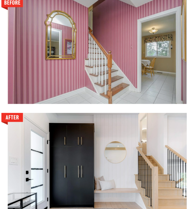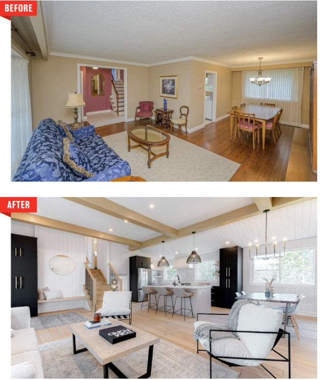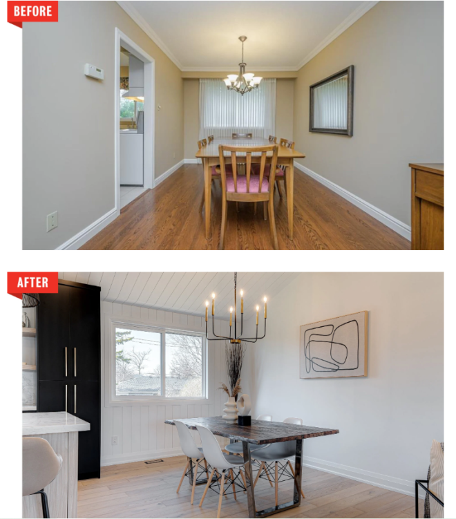 一位地产经纪在2022年夏天看中了大多区Burlington一栋房子,以100万元左右的价格买下。经过装修重整,这栋房子后来以170万元售出。 ![]() 图源:Toronto Life 据Toronto Life报道,Christina Wasley是一位地产经纪,她在去年夏天看到Burlington市的Shoreacres社区内一栋3+1卧室、3间浴室的房子正在挂牌出售。 Christina的丈夫Kim是一位建筑师。他们发现这栋房子已经几十年没有装修升级过:地毯老旧、配色过时、缺乏自然光。但是好的方面是,它有着很好的结构,而且地段极佳。 于是他们两人决定将这栋房子买下,并且投资预算35万元,立即开始了装修升级。 他们夫妇俩选择了一种通风、现代的外观风格,用上了木梁、设计师家具和黑色橱柜。 两人花了几个月时间,把房子里里外外全部重新翻新了一遍。 从车库、前院到楼梯、房间和厨房等,彻底进行大改造:Wasleys夫妇给车库刷了漆,并在立面上添加了黑色装饰,还更换了新窗户和车库上的雪松装饰。 ![]() 前院翻新包括:打造了由十英寸的木柱围绕着的焕然一新的前廊,还有雪松天花板、黑色檐口、新门和嵌入式照明。 ![]() 过去的门厅被粉色条纹壁纸包裹,并与房子的其他部分隔离开来。他们俩这次拆掉了隔墙,打造开放空间,还将天花板提高了两英尺,增加了木梁,并用锯齿板墙取代了旧壁橱和镜子,放置了一个黑色柜子和长凳。 ![]() 这是之前的客厅和餐厅区域,现在与门厅和厨房相连。他们换上了人造硬木地板、橡木楼梯和金属栏杆以及引人注目的照明装饰,来替换原先的实木地板、瓷砖、地毯和陈旧的吊灯。 ![]() 餐厅区现在是厨房的延伸部分,有着船板和拱形天花板。 ![]() 现在我们来仔细看看厨房。过去的半岛和通向书房的开放木栏杆已经被一个七英尺长的石英岛台所取代,里面装着隐藏的洗碗机和垃圾拉出式抽屉,还有一个不锈钢冰箱和开放式搁架。 ![]() 二楼有三间卧室。楼上的浴室急需一次改造。现在它有一个时尚的黑白色调、地铁瓷砖淋浴和浮动橡木梳妆台。 ![]() 房子的地下室经历了最大的改造。 ![]() 在后院,他们增加了一个露台,取代了旧的混凝土板。 ![]() 在今年4月完成工作后,这套房子以170万加元的价格售出,比他们挂牌上市时的要价还高出约10万加元。 “我们真是太幸运了,” Christina说。“市场在合适的时间反弹了。” |