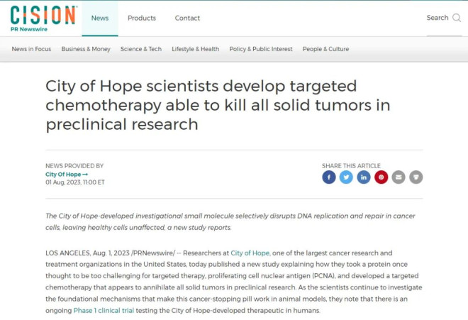 美国顶级癌症治疗和研究机构希望城市(City of Hope)国家医疗中心周二发布公告称,在临床前研究中,该机构科学家开发出一种能杀死所有实体恶性肿瘤(癌瘤)的靶向化疗药物。 ![]() 公告里所提及的临床前研究,已经以论文的形式发表在《细胞化学生物学》期刊上。前文提及的这款药物(AOH1996),是一款用来遏制肿瘤细胞增殖的口服小分子PCNA(增殖细胞核抗原)抑制剂。 背后的原理也很容易解释。增殖细胞核抗原在DNA复制和修复的过程中非常重要,这款药物特别针对PCNA的一个癌变形,这种蛋白质在所有扩展瘤的DNA复制和修复过程中起着关键作用。 根据临床实验前研究的报告,研究人员在70多个癌细胞系和几组正常细胞中测试了AOH1996。这种研究性疗法阻止了带有损伤DNA的细胞在G2/M阶段分裂,并阻止了在S阶段复制错误的DNA。最终结果的结果是,AOH1996引发了癌细胞的死亡(或者叫凋亡),同时并没有中断健康干细胞的繁殖周期。 注:根据生物常识,细胞周期分为有丝分裂期(M阶段)以及细胞增长、复制DNA副本和继续增长的间期(G1、S和G2阶段)。处于周期中的子细胞可以不断重新开始一样的周期。 ![]() 效果显著 人体试验也在进行中 在过去二十年时间里持续开发这款药物的Linda Malkas博士介绍称,PCNA就像一个包含多个飞机航站的航空枢纽。数据显示,癌细胞的PCNA存在独特的变化,这一事实使其能够设计出一种只针对癌细胞PCNA的药物。这款癌症杀手药丸就像是一个关闭关键航空枢纽的暴风雪,只停飞那些携带癌细胞的飞机。 根据希望城市国家医疗中心给出的试验图片,在用药前(左图)和用药(右图)后,癌细胞的状态出现了显著的变化。 ![]() AOH1996在临床前研究中对来自乳腺癌、前列腺癌、脑癌、卵巢癌、宫颈癌、皮肤癌和肺癌的细胞进行治疗,并已经显示出疗效。而且AOH1996可以口服,且代谢稳定,无论是作为单独治疗还是作为联合治疗,都可以抑制肿瘤生长,但不会引起可察觉的副作用。 另外,实验也显示AOH1996能够使癌细胞对引发DNA或染色体损伤的化学剂(例如顺铂)有更强的敏感性,预示着这款药物具备联合用药的潜力。 随着动物模型验证药物可行性后,AOH1996也已经进入Ⅰ期临床试验阶段,该阶段主要测试药物的安全性和推荐使用剂量等情况。 根据美国临床试验资料库的数据显示,这个阶段的试验预期在明年3月底前结束。也就是说,大概在一年左右的时间里,我们就能看到这款药物在真实患者身上使用的数据。 |