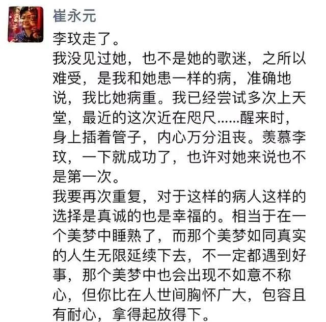 近日,崔永元罕见露面,在自己的账号上晒出书法作品,很多人看到他的精神状况,不由得为他担心。 ![]() 视频中,我们看到他穿着一个灰色背心,下身是一条皱巴巴的大裤衩,加上突出的大肚腩,很像一个公园里散步的小老头。 或许是大家很久没见到他了,崔永元的容貌变化还挺大,都快有些认不出了,脸色看起来有几分憔悴,两个黑眼圈十分明显,眼袋耷拉着,像是没睡醒的样子,整个人缺乏精气神。 看到他的这幅模样,不少网友喊话,让他好好休息,保重身体最要紧。 是呀,曾经我们熟悉的那个崔永元不是现在这个样子,当初他可是央视舞台上光芒四射的人,也是全国人民深深爱戴的主持人小崔。 ![]() 但因为工作的关系,他不幸患上了抑郁症,二十多年来一直饱受疾病的折磨,渐渐地淡出了公众视线。 自从2018年那件事后,他几乎没有再公开发声,过上了一种与世无争的隐居生活。 直到上个月华语乐坛天后李玟去世后,崔永元再次露面,发文悼念这位才华横溢的歌手,同时毫不避讳承认自己至今仍被抑郁症困扰着。 ![]() 同时,他还称自己很羡慕李玟,一次就成功了,而他尝试轻生很多次都失败了,幸亏被家人及时拉了回来。 或许对于那些身陷抑郁症的人,活着才是最痛苦的,因为离开了就解脱了,包括那些折磨人的痛苦也不复存在。 ![]() 原来我们才知道,崔永元这些年过得很不好,可以说非常糟糕。 这些年,离开舞台中央的他,过着深居简出的日子,一边跟抑郁症抗争,剩下的时间不是在练书法,就是在画画或阅读。 而这一次露面,崔永元还透露了一个小秘密,好友帮他在某平台开设一个画廊,用来展示作品,同时也售卖字画。 ![]() ![]() 这次晒字画,间接也曝光了他的居住环境,让人意外的是,内景并不像其他名人住的那般奢华,显得朴素且简陋,跟普通人家的居所没啥两样。 由于屋子放着不少杂物,看上去有些拥挤不堪,就连他的字画都是悬挂在冰箱上。 不过,屋子虽然看着有点“寒酸”,崔永元却表示自己,并没有“穷到揭不开锅”,网上的传闻有些夸大其词了。 ![]() 即便如此,他还是希望大家是因为欣赏他这个人,才去购买那些字画,而不是为了接济他,同情他才这么做,否则他会认为自己很可怜,很没用。 不得不说,崔永元是一个有风骨的文化人。 即使现在有些落魄,没有了往日的意气风发,他依然活得很有尊严,这是一个值得尊重的老媒体人。 ![]() 相信他的那些字画里,也寄托着他做人的风骨和精气神,如果有需要的朋友,真的可以购买,用以收藏。 最后我们真心祝愿崔永元平安喜乐,在未来的生活中过得越来越好,继续带给我们新的惊喜和感动。 |