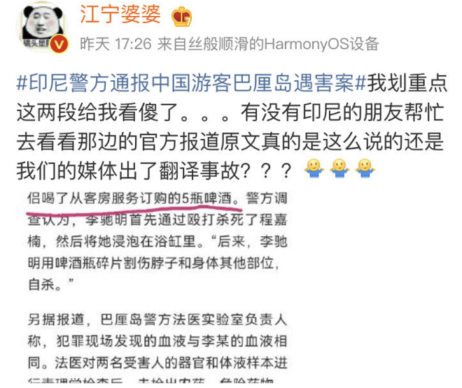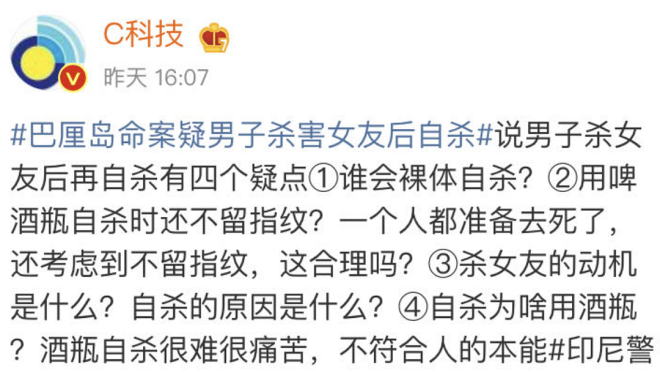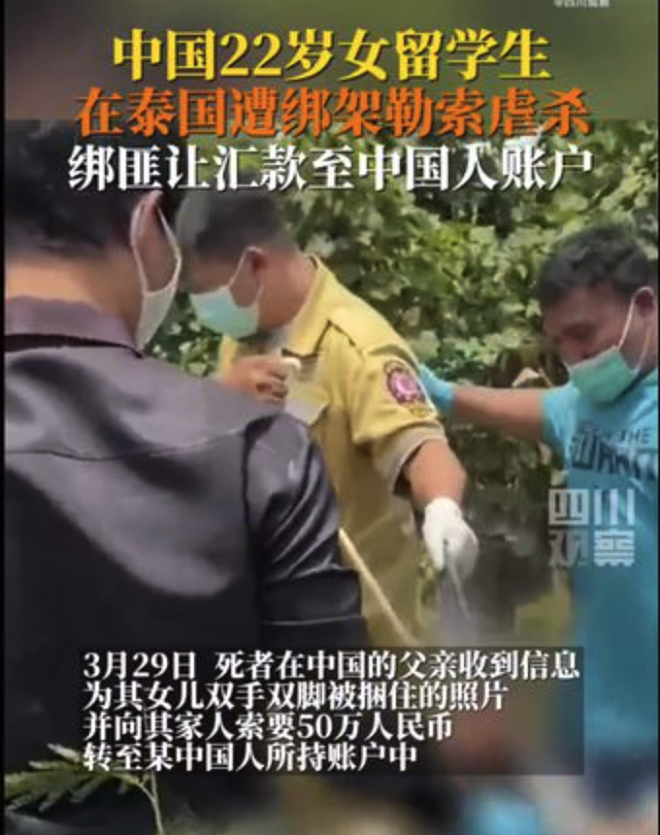 这是一位拥有亮丽外貌、性感火辣身材的网红美女主播,直播频道拥有15万粉丝,Instagram追踪人数超过25万。 今年3月,美女主播在网上宣布停止直播活动,将赴柬埔寨旅游,回国后再向粉丝们解释离开的原因。 ![]() 没想到,这次的柬埔寨之行竟是有去无回的死亡之旅:她被发现陈尸在金边近郊的水沟里,尸体由红布包裹,死状惨不忍睹。 综合多家外媒报道,6月6日,柬埔寨警方在首都金边郊区、甘丹省甘丹斯登县的某处水沟发现一具身份不明的女尸,尸体被一张红布包裹着,丢弃到该处。 柬埔寨国家警察署指示当地刑事警察局查办,最终证实死者为来自韩国的33岁知名主播边娥英(변아영)。 ![]() 经多方调查,警方确定嫌犯为一对来自中国的夫妻,他们在金边著名的万景岗区经营诊所。 案发时边娥英在当地旅游感到不适,到这对夫妇的诊所里就诊,结果不幸身亡。 ![]() 嫌犯夫妇分别为30岁的赖男和39岁的蔡女。夫妻俩被逮捕后供称,6月4日,边娥英到他们的诊所看病,吊点滴、注射血清。期间突然癫痫发作、全身抽搐,最终气绝身亡。 夫妻俩称,自己当时非常害怕,就把尸体用红色垫子包起来,之后开车运到甘丹省弃尸。 ![]() 不过,当地媒体《RSC》的报道指出,死者被发现时脸部有明显的被殴打痕迹,伤口严重到甚至导致无法清楚辨识脸部特征,其他还有颈部骨折、全身挫伤、烧烫伤等。 案件发生后,韩国外交部表示,将会向死者家属提供外交上的协助。韩国警方也邀请柬埔寨警方提供协助,向和边娥英同游柬埔寨的友人进行详细调查。 边娥英外型亮丽、身材性感火辣,常常在社交平台上发布一些自拍和视频,还会做一些直播和粉丝互动,在网上人气相当高。 2019年,边娥英曾被爆和男团GOT7成员Mark交往,不过随即遭到本人否认。 谁能想到,这样一位网红主播竟突然客死他乡且死状凄惨,让很多网友都震惊不已。 ![]() 对此,有国内网友表示:“外面太乱了,还是祖国比较安全”,也有人感慨说:“穷也是有好处的”,对边娥英魂断异乡感到唏嘘不已。 说起来,疫情过后,出国旅游的人多了,一些恶性案件随之发生并被曝光。 其中最令人感到震惊的,无疑是一对20多岁的中国籍情侣,被发现全身赤裸死在印尼巴厘岛一家五星级酒店的悬案。 ![]() 根据此前的报道,这起命案发生在巴厘岛金巴兰洲际酒店,死者是25岁的广西籍男子李某及22岁的江西籍女子程某,案发当晚两人住在这家酒店的4223房间。 ![]() 据报道,程某和李某是情侣关系。5月1日清晨6时多钟,李某被发现全身赤裸地倒在走廊的血泊里,疑似失血过多,已经没有了气息。现场血迹斑斑,像是“血都要流光了”。 酒店证实,此前曾有住客打电话给酒店客服,表示他听到有其他住客在走廊上大声呼救。 女方程某是南昌工学院学生,去世之前还没有毕业。 程某稍后被发现全身赤裸死在酒店房间的浴缸里,警方表示,女死者颈部周围有遭缠绕的痕迹,额头也有瘀伤。 ![]() 5月17日,印尼警方联合调查组召开发布会,公布了两名中国游客死因:两人死于互相伤害和自杀。男方先将女方杀害,随后用破碎的啤酒瓶刺伤颈部等部位自杀,此案不存在第三人。 ![]() 警方的调查结果公布之后,相关词条迅速冲上热搜,很多中国网友对印尼警方的调查结果表示并不认同。 ![]() 有网友质疑,多家媒体的报道均表示,事件发生前两人点了5瓶啤酒,但法医检查称,在两人的器官和体液样本中未检出酒精。 ![]() 还有网友质疑称,警方表示,在玻璃碎片上没有检测到指纹,用酒瓶自杀还没有指纹?一个人都准备死了,还考虑到不留指纹,这合理吗? ![]() 另一起案件也同样让人感到惊悚。 今年3月底,一名22岁的中国女留学生在泰国被绑架后惨遭杀害,弃尸到一片香蕉林附近的水沟里。 泰国警方表示,初步确定嫌犯为3名中国籍男子,案发后已逃回中国。 ![]() 4月3日,武汉警方宣布,已成功逮捕涉嫌杀害中国女留学生的3名中国籍犯罪嫌疑人。 据此前报道,死者大一至大二期间均为网上授课,于今年3月8日入境泰国以继续完成学业。然而刚到泰国一个月,便遭遇不幸。 警方公告称,3名嫌犯通过调查死者经历得知其父亲是一名音乐老师,且家世不错。于是,嫌疑人团伙计划在死者3月初进入曼谷读大三时,设下“恋爱圈套”引诱她爱上其中一名嫌疑人,随后通过绑架死者向其父亲勒索赎金。 被害者父亲称,3月29日,一名神秘男子用其女儿的微信向他发送了金某被绑架的照片,并要求其向一个中国账户汇入50万人民币的赎金。由于不确定女儿的具体情况,受害者父亲没有在第一时间将钱转给歹徒。 ![]() 然而,后面歹徒拿到了钱,还是没有放过这位女生。 三起案件中的受害人,都是离开熟悉的环境前往异国他乡遇到了致命伤害。 虽然我们不能以偏概全,就此说外面都不安全,但人生地不熟的地方确实更容易产生危机,大家出去了一定要擦亮眼睛,不轻信陌生人,时刻注意保护自己的生命财产安全! |