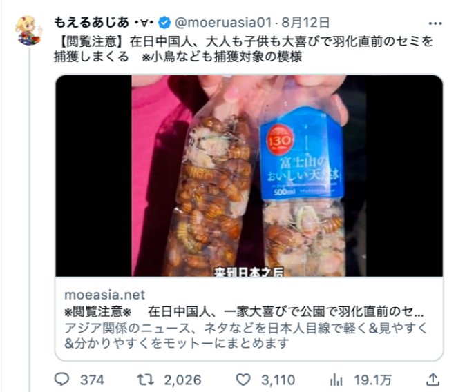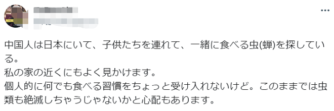 继中国大妈在日本挖牡蛎上热搜被喷后...在日大妈们又盯上了公园里的蝉。 ![]() 而且这位抓蝉的大妈还很兴奋的将她在日本抓蝉的“罪证”发到了网上,这引发了日本网友的强烈不满。 ![]() 先带大家了解一下视频的内容: 视频中大妈介绍自己是来自中国山东,今天带着一家老小来逛公园时,突然发现树上有大量蝉蛹和蝉蜕,很是惊喜的他们决定开始抓蝉玩。 画面中的这一家人好像很熟悉蝉的习性,不用任何道具,用手就很轻松的将蝉抓住。 ![]() 抓完后还很专业的将它装在有水的瓶子里。估计是想让蝉的翅膀沾湿,以防瓶盖打开后逃跑。 ![]() 动作娴熟的大妈,不到二十分钟就抓了满满一大瓶,视频的最后,大妈拿着两瓶满满的蝉很是开心。 ![]() 其实这条视频只是引起了日本网友对她们的关注,大家只是告诉她日本不允许抓蝉,觉得不知者不怪。真正引起网友们讨论和愤怒的是以下这条视频: 画面中大妈将捉回来的蝉放入油锅中炸熟,然后上桌。 ![]() 丈夫试食后大赞:“喷香喷香的”随后大妈又将蝉夹给儿子,他乖乖放入口,然后点头。 这残忍的画面,引发了日本网友的不满!不少日本网友看过视频后都表示感到呕心,也有人担心大量蝉只被抓走,当地生态将受影响。 ![]() ![]() 其实,抓蝉吃蝉这事在中国的话不算是那么恐怖,但是在日本,很多公园都会标注不许抓蝉,因为日本怕会因此破坏生态。 ![]() 因为不知道是哪个国家的人抓蝉,所以他们除了放日文警示牌,还放了中文和英文的。 ![]() 据了解,这位大妈的抓蝉吃蝉的视频已经全部删除了。 有日本网友评论:我并不是要否认饮食文化,但我希望你来到另一个国家时不要再违反规则、不遵守礼仪。” 进了别人的家就要遵守人家家里的规矩,小编觉得这句话说得很有道理,你们觉得呢? |