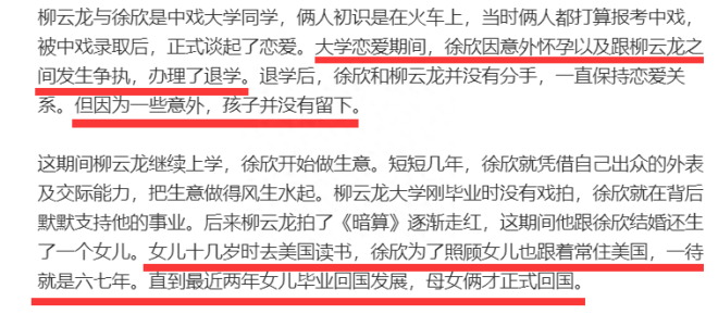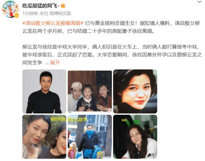 8月22日,有瓜主爆出大瓜,声称知名演员柳云龙与原配妻子徐欣已于两个月之前办理离婚手续,结束了两人长达20多年的婚姻生活,至于两人为何会落得分道扬镳的结局,背后的爆料与隐情也是足够劲爆,相传两人的离婚原因是男方出轨在先,且与婚外情人有了私生女。 ![]() 提及柳云龙的大名在此不用赘述,作为谍战剧中的王牌演员,柳云龙凭借睿智正直的荧幕形象吸粉无数,也算是“叔圈男神”中的一员大将。 ![]() 据悉,他与妻子徐欣大学期间便确定恋爱关系,期间相传徐欣还不慎意外怀孕,最终导致其无奈退学,不过退学之后的徐欣始终与柳云龙坚守在一起,只可惜腹中的孩子因为种种原因没能留住。 ![]() 退学之后的徐欣便开始着手做生意,因为头脑灵光很快就干出了一番成绩,起初柳云龙的演艺事业一度陷入困顿,在此期间,徐欣一直在其背后给予支持,好在后来柳云龙凭借《暗算》一鸣惊人,两人也步入婚姻殿堂,婚后两人迎来可爱的女儿,因为女儿十几岁就在国外念书,所以身为母亲的徐欣不得不留在美国照顾女儿,一待就是五六年,直到最近两年女儿才学成回国。 ![]() ![]() 在外界看来,柳云龙与徐欣曾是一对模范伉俪,然而没想到两人的感情早已破裂,曝柳云龙早就出轨合伙人杨健,两人还有个私生女。 ![]() 杨健虽然相貌平平,并不美艳,但名校高材生出身的她实力十分雄厚,爆料说她是北大(专题)毕业的才女,在事业上曾给予柳云龙不少帮衬与助力。 ![]() 据了解,杨健此前有过一段婚姻,但与前夫并未生育孩子,2009年,杨健被拍到与柳云龙分别开车来接一个小女孩放学,而后一起回到居住的别墅中,从拍到的照片来看,小女孩浓眉大眼,长相清秀,眉眼之间的确有几分柳云龙的影子。 ![]() 如今柳云龙与徐欣被爆正式离婚,杨健自然成为舆论热议的对象,有网友也在评论区爆料,说徐欣苦苦等柳云龙几年回心转意,却还是坚定离婚。 ![]() 还有网友爆料说早在5年前,自己在瑜伽课上认识了一位姐姐,其正好是杨健的闺蜜,闲聊之中对方的确透露杨健的女儿就是与柳云龙所生,这一点周围人基本都知道,只是不清楚原配徐欣是否知情。 ![]() 另外有网友也表示自己早在5年前就有所耳闻柳云龙出轨的事情,今时今日终于听到了他与妻子离婚的消息。 ![]() 其实,在今年一月的时候,就有网友爆料说柳云龙与徐欣已经离婚,还猜测柳云龙和杨健是什么关系,看来确实很多人都知道内情,他和杨健在一起那么久,想隐瞒恐怕也不容易。 ![]() 此外,从之前与柳云龙相关的采访文章中可以得知,杨健不仅是柳云龙的合伙人搭档,还是对方的经纪人,当时记者想要联系柳云龙接受访谈,需要先行与杨健沟通联络,在这篇文章中,这位记者讲述了当时柳云龙并没有按照预先安排接受电话采访,事后还是杨健给予回应解释说当天柳云龙一直在看网球,以至于忘记了这项工作。 ![]() 基于这次失误,杨健还努力进行补救,将原先敲定的电话采访改成了书面采访,最终柳云龙交付的书面回复质量水准很高,想必其中少不了杨健的指点与功劳。 如此来说,杨健不仅是合伙人,还是经纪人,连柳云龙看网球这样的小事都一清二楚,要说两人的关系从那时就很不一般了吧。 ![]() ![]() 截止到目前,针对离婚风波,柳云龙方还未做出相关回应,他与杨健的真实关系依旧是个谜题,可以确定的是,正如柳云龙在此前采访中提到的那样,他与杨健之间的关系的确是“非同一般”。 |