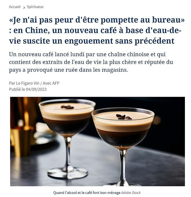 午夜的酒伤您的胃,不如大清早来一杯酱香咖啡!一边上头,一边清醒! ![]() 排上那十米的长队,去除了久坐带来的辛劳,悄悄在办公室喝醉,打工的怨气云消雾灭! ![]() 这款“国风大咖”,才一上架就狂卖1300万欧元,“茅台酱香拿铁”的成功引起了法国人的震惊和眼红,他们心想这东西,说新吧也不新,都是咱玩儿剩下的,从拿破仑老爷子创始,在欧美卖了多少年了,也没见冒出个水花。 说它历史悠久吧,现在又突然在东方重新焕发生命,像是个划时代的新产品似的,受到消费者如此狂热的追捧,简直成了敛金高手的财富密码。 ![]() 法国主流媒体比如《费加罗报》等等,都争相报导这一现象,在他们眼里,中国人的创新精神和实践能力是从来都没有瓶颈的!中国人对昂贵酒液的消费力也是不可小觑的! 要知道,喝咖啡在中国并不是一种传统习惯,但在过去 20 年里,咖啡正在越来越受欢迎,快要和茶并驾齐驱,这和国人超强的洞察力和智慧紧密相关。 年轻人大量饮用咖啡,从拿铁到美式咖啡,当然,还有更现代、更出人意料的版本! ![]() 很多品牌都争相推出的陨石厚乳拿铁,星巴克还研制出更适合中国宝宝体质的龙井米酿拿铁,便利蜂还卖过四川麻辣拿铁。 ![]() 咱们神州地大物博,读者一定还见过更丰富多元的拿铁战队,记得来给我们留言分享! ![]() 西方人喝了几百年的咖啡,却从未有过什么过人的新点子,无非就是在咖啡里加些牛奶、加些糖、加点巧克力,像爱尔兰咖啡那样加点酒就被认为是登峰造极之作了,往后几个世界都无人能出其右,还杜撰出好几个版本的浪漫爱情故事! ![]() 说回国内这个风味拿铁的风潮啊,小编认为,归根结底,这还是因为中国人“不爱喝咖啡”,或者说大部分人是不喜欢咖啡的原本滋味的,所以才需要进行一番“添油加醋”。 早在瑞幸咖啡发迹之前,他们的投资人就敏锐地发现,其实中国人并不真的爱喝咖啡,但还是要消费咖啡,为啥呢? ![]() 还不是因为奶茶越来越贵,喝不起了! ![]() 大家更喜欢的提神而且好喝的奶制品饮料,或者说就是咖啡味儿的牛奶、椰奶、燕麦奶罢了!当然,最重要的是,还必须有甜味。 ![]() 当然啦,全世界咖啡现在都有这个花里胡哨的趋势,和保守的欧洲原教旨咖啡相比,日本现在还有柚子美式、韩国咖啡店还有花生酱奶盖拿铁(小编简直不敢想象这会有多好喝),澳洲还有拿铁可露丽。 ![]() 其本质,都是为了帮助消费者避开咖啡苦和涩的本味,故而用不同的风味来遮掩,达到适口性最佳的目的。 曾经觉得瑞幸价廉物美的消费者也开始抱怨:“现在咖啡味儿越来越淡了,慢慢快变成奶茶了。” ![]() 此次瑞幸风光联姻豪门茅台,法国媒体虽然是好奇万分,但也有一点点搞不清楚状况,比如说他们对于中国酒业巨头的认识似乎还是很有限的,他们把茅台称为“白兰地”或者“l’eau de vie”,和欧洲的传统粮食烈酒混为一谈了,这个翻译完全没有体现出国酒茅台的尊贵地位。 ![]() 虽然很多年轻人不喝白酒,也不喝黑咖,但当香浓的酒体和咖啡火辣融合,一个让你清醒,一个让你微醺,再挤上甜蜜润滑的奶油雪顶,全糖拉满摇匀,这个配方出乎意料,分分钟爆单,如果你九点钟上班,最好8点钟就下单。 ![]() 喜欢喝酱香拿铁的人把它比作酒心巧克力:“没想到这么好喝,甜甜的,酱香能在嘴里持续很久的时间”。 不过也有人对这个味道接受不能啊,说像是喝了宿醉呕吐物,又像是“凌晨四点被喝醉的大叔亲了一口”,啊这······ ![]() 无论如何,中国人对商业新产品的喜爱让法国人嫉妒万分,Luckin Coffee这次伟大的创举,仅在周一推出的第一天,该连锁店就赚了 1300 万欧元。 利口甜酒、白兰地、茴香酒,明明欧洲人最爱酒与咖啡共饮,如今却开始反思自己为什么离这份光芒越来越远。 ![]() 都说拿破仑是血管里流的都是咖啡,一辈子无论在哪里打仗,总有七个咖啡壶一直放在炉子上,他说“我宁愿忍受大量咖啡带来痛苦,也不愿成为一个傻瓜”。 ![]() 在远征俄罗斯的时候,为了让冻僵的身体能活血振奋,体温上升,他率先大胆地把白兰地混合到咖啡里饮用,战后,这种气质迷人的白兰地咖啡继续风靡于各国宫廷,人们赋予它“皇家咖啡”的美名,甚至衍生出专用的咖啡杯和勺子。 ![]() 方糖放在皇家咖啡专用勺上,白兰地从方糖上方倒入将其完全浸透,点燃后冒出幽幽蓝光,酒的醇香与糖的焦香肆意融合,确有皇家风范。 火焰熄灭后,轻轻搅匀,趁香气和热度都达到巅峰状态时饮用,如果晚上只能喝一种咖啡而不影响睡眠,可能就是这一款吧。 ![]() 白兰地是法国的骄傲,浑身散发着浪漫情调,难怪他们把茅台称为“中国的白兰地”。 除了烈酒,葡萄酒与咖啡的结合也不是异端邪说,利摩日咖啡节(Limoges Coffee Festival)来到法国的时候,就有很多酿酒师来和咖啡结缘,他们认为,风土咖啡(不是超市里的烧焦咖啡粉,而是"真正的 "咖啡)与合适的瓶装酒之间的和谐程度会令人非常惊讶。 ![]() 因为优质葡萄酒与风土咖啡在精神上非常相似——它们的果实都要经过精心呵护、细心收集,然后用古老的手艺赋予其最终的外观和滋味。 ![]() 一包好的烘焙咖啡豆,一瓶好酒,除了收获和收成、储存过程有默契之外,法国人还在寻找葡萄酒和咖啡在香气和口感上的相似之处,从而获得独特的体验! ![]() 海峡另一边的英国酒鬼们,由于气候寒冷的关系,身体里需要不时补充热饮以御寒,他们把有甜味和烟熏味的