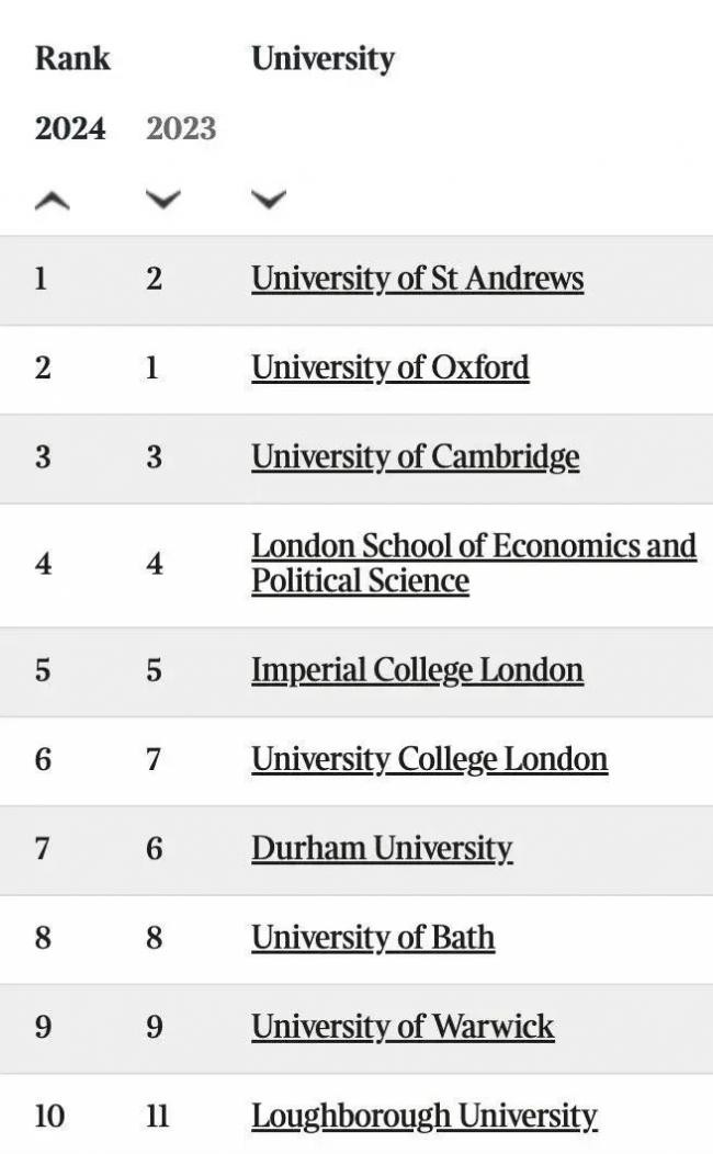 最近,英国杂志《泰晤士报》和《星期日泰晤士报》(The Times & The Sunday Times)发布了2024年的英国大学最新排名——《Good University Guide 2024》。 看英国院校排名,我们可以从三大英国本土排名出发: 完全大学指南,卫报大学排名以及本次发布的泰晤士报大学排名。 这三家排名有什么不同呢?哥帮大家列出了排名标准和评判差异: 今年《卫报》英国大学排名指标包括以下9项 ●课程满意度:毕业生对课程整体质量的评价 ●教学质量满意度:毕业生对课程教学质量的评价 ●教学反馈满意度:毕业生对课程教学质量的评价 ●师生比 ●学生人均投入:平均花费在每名学生身上的钱(不含教职工费用) ●平均录取成绩:录取学生(21岁以下)的 UCAS 标准成绩 ●学位增值评分:对比入学要求和最后获得的学位成绩,以显示教学质量 ●毕业15个月内的就业率(含升学读研、读博) ●大一新生辍学率 PS:其中课程满意度、教学质量满意度和教学反馈满意度均基于英国全国学生调查NSS的数据 报大学排名采用更广泛的方法,包括学生满意度、就业率、课程满意度等社会因素。提供了综合性的大学排名,同时也提供了特定学科领域的排名。 重点关注学生的体验和大学在社会中的影响。强调了对学生体验和职业准备的关注。 ![]() 今年CUG的排名指标包括以下10项: ● Entry Standards 入学要求 ● Student Satisfaction 学生满意度 ● Research Quality 研究质量 ● Research Intensity 科研人员占教职工比例 ● Graduate Prospects-outcomes毕业生就业率-已达成 ● Graduate Prospects-on track 毕业生就业率-计划中 ● Student–Staff Ratio 师生比例 ● Academic Services Spend 学术经费/每人 ● Facilities Spend 设施经费/每人 ● Continuation 升学率(去年是Degree Completion-毕业率) 该排名机构的方法论相对较为保守,提供了详细的大学排名,覆盖了英国各个学科领域。 重视传统的学术指标和数据。经常会更新其排名列表。 而《泰晤士报》的发布的排名更能准确反映英国当地人对各所大学的评价。 2024年的排名根据八个关键指标对131所英国大学进行全面评估。 以下是这八个重要指标,按各要素构成了今年排名的基础。 ✅Teaching quality(教学质量) ✅Student experience(学生体验) ✅Research quality(科研水平) ✅Entry standards (Ucas points入学标准) ✅Graduate prospects(毕业生前景) ✅First / 2:1s(一等级、二等一学位获得率) ✅Continuation rate (毕业率) ✅Student-staff ratio(师生比例) ● 与其他排名机构相比,泰晤士报排名更关注大学的国际声誉和影响力 今年的排名前十名与去年相比基本保持不变。 ![]() 在此次TIMES2024排名中圣安德鲁斯大学已经夺回了英国第一的头衔,成功击败了牛津大学。 而且在最近的《卫报》排名中,圣安德鲁斯大学同样排名第一。这也意味着圣安德鲁斯成为继牛津和剑桥外,第一所在两大英国本土排名同时位居榜首的大学!真·双料冠军! 圣安德鲁斯大学备受英国皇室喜爱的老牌名校,其建校时长仅次于牛剑,已有600多年的历史了。 相比牛津,圣安在二等一以上学位比例、师生比例、入学标准评分上均略高一些。 这所“贵族”学校在英国本土的声誉卓著,满意度更是非常高,作为一所享有卓越声誉的“贵族”学府,一直以来在英国本土备受推崇,其学生满意度一直名列前茅,常年占据排行榜前两名的位置。 去年占据第一席位的牛津大学今年则顺位到了到第二名的位置。 去年排名第一的牛津大学今年位居第二。 第3-5名的学校仍然是剑桥大学、伦敦政治经济学院和帝国理工学院,和去年的排名一致。 伦敦大学学院和杜伦大学排名调换,分别位于第6名和第7名。 其中伦敦大学学院(UCL)跃升一位,位居第六,并且荣获《泰晤士报》评选的“年度最佳大学”荣誉。 巴斯大学和华威大学保持了第8和第9的位置。 拉夫堡大学由去年的11名上升1名跻身前十,而在去年位于第十名的爱丁堡大学则下降至第13名。 ![]() 埃克塞特大学上升2名,排名第11;格拉斯哥大学上升2名,排名第12; 约克大学上升2名,排名第15;布里斯托大学和南安普顿大学分别位列第16、17; 谢菲尔德大学上升2名,排名第18;曼彻斯特大学排名第23;伦敦国王学院排名第27。 在第11-30排名中,大部分院校和2023年排名相比略有浮动,其中进步最为明显的是伦敦大学亚非院校,从去年的第37名上升9名至第28名,冲进前30。 2024 TIMES预示了什么趋势? 1 在英国,计算机科学已经成为一门备受欢迎且收益可观的学科,这让许多年轻人愿意学习并承担高达3万英镑的大学学费来获得这一领域的学位。 据《泰晤士报》官方报道,自2019年以来,申请攻读机器人学、视频游戏设计以及网络安全等学科的学生数量增长了31%,在过去的12个月中增长了近10%,这使得计算机科学专业成为英国增长速度最快的首选学科。 2 这份指南的调查结果表明,英国大学提供的文科学位数量急剧减少,特别是外语学位。 不过,这也催生了新的学位课程。 例如,索伦特大学推出了电脑游戏编程和设计课程,而阿伯泰大学提供了道德黑客、网络安全和计算学位。爱丁堡纳皮尔大学设有一个容纳500名学生的计算机中心,而约克大学的安全自主研究所于2022年开放,设有“生活实验室”,用于测试无人驾驶汽车技术和机器人技术等创新…这也预示着越来越多的学校将推出电脑游戏编程和设计课程,提供道德黑客、网络安全和计算学位;同时,研究中心用于测试无人驾驶