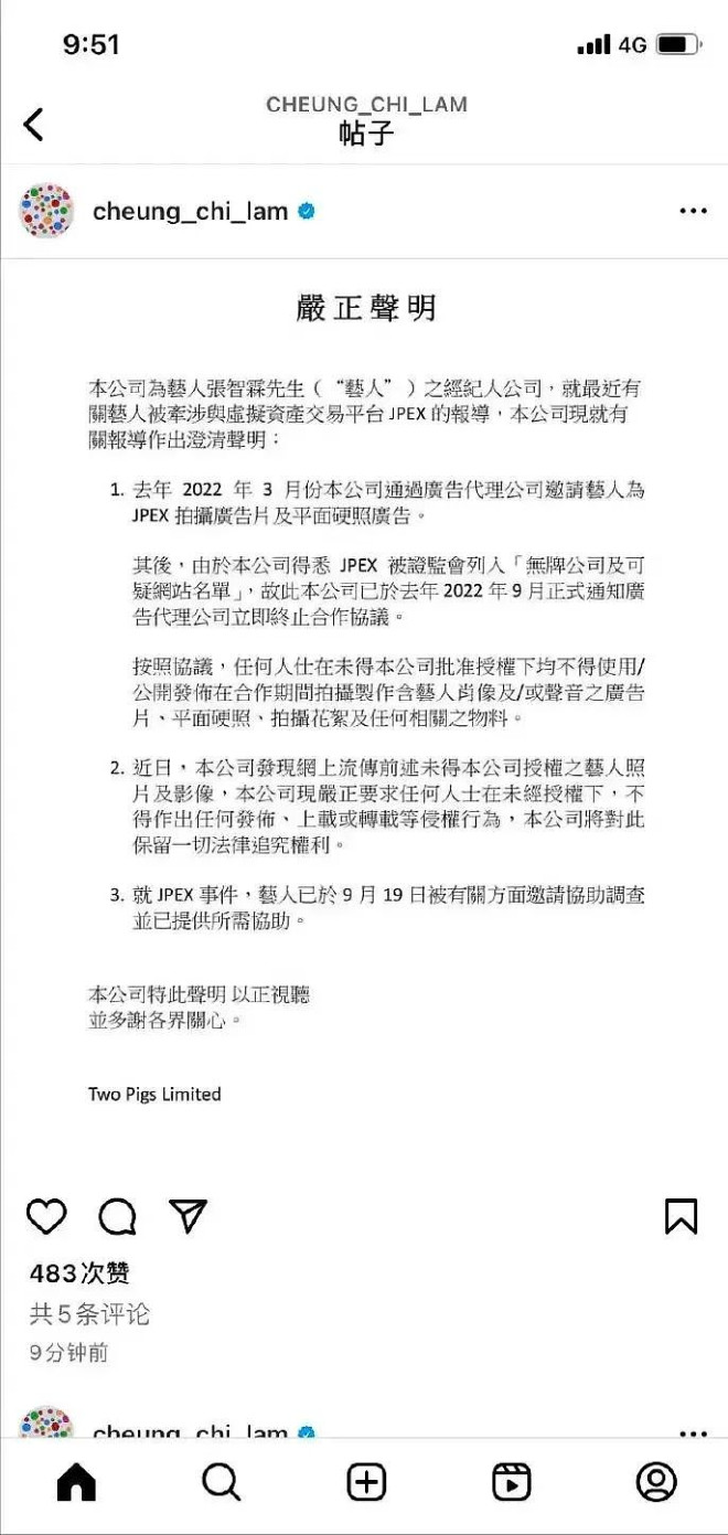 港圈曝出大瓜了,张智霖在9月19日被警察传唤带走,迅速上了热搜。 ![]() 原来,张智霖曾经代言过JPEX的虚拟加密货币代言,如今这个JREX涉嫌诈骗,涉案金额超过10亿港币,已有11人被捕。 ![]() 张智霖因为是代言人,难辞其咎,很多人因为他明星的身份,轻信诈骗团伙,已有1200多人上当受骗。 其实不光是张智霖,还有很多明星曾经宣传过加密货币,明知不可为而为之,只因利益熏心,丧失了道德底线。 林俊杰曾公开站台虚拟加密货币,他还在元宇宙投资过房子。还有陈柏霖王大陆等明星,也曾公开站台。 ![]() ![]() 还有周星驰,也曾为加密货币宣传,有许多艺人都公开宣传过。 ![]() 伊能静还特意去新加坡,专门搞这个虚拟加密货币。 有钱人的世界,让人捉摸不透,反正知道是割韭菜就对了。 网友们都在群嘲,袁咏仪哭晕在厕所,以后买不了爱马仕了,毕竟韭菜不好割了。 稍晚点,张智霖公司发了严正声明。 ![]() 张智霖是去年3月代言的JPEX,后来发现对方没有资质,于是在9月发了书面信给对方公司,通知他如果没有资质就解约,正式解约,停止用他的肖像。 没想到今年九月份暴雷,张智霖说只是配合警方做调查,没有被批捕。 这些年,关于明星代言暴雷的案例数不胜数,有些明星们只负责收钱,不去验证代言的产品靠不靠谱。 汪涵、李维嘉、杜海涛,就曾代言过理财产品,然后平台跑路了。 受害者到水果台维权,汪涵发文推卸责任,说很早就没有合作了。 杜海涛也发文说,只是合作了一段时间而已,把责任推得一干二净。 李维嘉,他代言的奶茶加盟店,害得好多人倾家荡产,到台里拉条幅。 ![]() 李维嘉躲了,反正捞够了可以全身而退,独留受害者们风中凌乱。 快本停播后,李维嘉淡出娱乐圈,躲过风头以后又复出了。 关晓彤代言的奶茶加盟店,暴雷打官司,工作室推得干干净净。 看来明星效应已不香,买东西不要过于迷信明星代言,还是要看产品的口碑。 尤其是一些有风险的理财产品或者加密货币,把握不住就不要乱买。 我记得张信哲曾给境外赌博平台代言过,说实话挺让人幻灭的。 情歌王子张信哲,许多人都把他当男神偶像,自定给他加滤镜。 没想到为了钱,情歌王子也可以没有底线。 每个人都知道,黄赌毒是绝对不能碰的,一沾就死,有多少家庭因为黄赌毒的原因破碎,倾家荡产家破人亡。 而张信哲,竟然为了那点代言费打破底线。 除了明星代言,明星直播带货,大家也要擦亮眼睛。 戚薇带货时发出过假货,不过还是不了了之。 李佳琦带货的花西子,代工厂是日企,成本也很低。 因为有了明星效应,一支眉笔买到79元,还不许粉丝说贵。 ![]() 那高高在上的嘴脸,让人想一巴掌呼过去,涨没涨工资,和你有关系吗? 我觉得9.9元的眉笔就已经很奢侈了,就算眉笔再好,还能镀金吗? 用了是能成仙,还是可以变成仙女呢? 任何东西加上明星代言,价格就翻倍,全民都在为明星效应买单。 很多明星开公司,为了怕承担责任,都会拿别人的名字当法人,里面的水太深了。 我虽然人微言轻,但也想用一己之力呼吁一下各位明星网红们,代言产品时麻烦用心把关,不能钻钱眼里去,最终害人害己! 希望公众人物一定要爱惜羽毛,你才能走得更长远! |