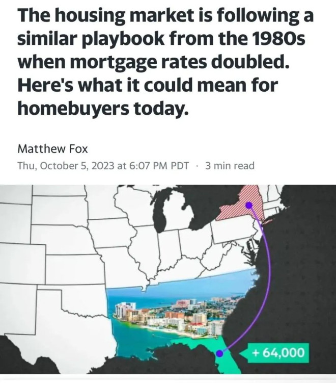 过去一周的美债风暴引起了人们对房地产市场房贷利率的担忧,因为固定利率房贷的利率是由长期国债的收益率决定的,利率的上涨无疑对楼市有抑制作用。那么,北美的楼市会如何发展? Business Insider近日撰文称,美国当前的房地产市场更像1980年代的情况。 ![]() 全美四大行之一的美国银行本周四在一份报告中表示:“我们认为1980年代更适合作为当今市场的类比,而不是2008年的次贷危机。” 高通胀、飙升的房贷利率以及因人口增长而被压抑的住房需求,是今天与40年前的一些相似之处。 从1970年代直至1980年,通货膨胀一直飙升,房贷利率从约9%上升到1981年的18%,而婴儿潮一代(二战后出生的人)正值他们购房的黄金年龄。 步入2023年,通货膨胀再次飙升,平均30年期固定房贷利率已经从约3%上升到7%以上,千禧一代(在跨入21世纪以后达到成年年龄的一代人)正在步入购房的黄金年龄,推动了被压抑的住房需求。 ![]() 那么,这对未来的房地产市场意味着什么呢? 美国银行表示,这意味着从现在开始房价不太可能上涨,甚至可能小幅下跌,但不会像2008年金融危机时那样大幅下跌。 问题在于,今天的消费者面对高额的房贷利率还能忍受多长时间——高利率导致许多千禧一代负担能力恶化。 美国银行表示:“居高不下的房贷利率导致短期内的购房决策更加困难。事实上,在1980年代,有利的人口结构无法支撑当时的市场,这次也恐怕不能刺激当前的市场。” 美国银行补充说,当前的房地产市场和1980年代的房价走势也有相似之处。1979年,房价飙升超过16%,随后基本持平,1982 年同比增幅放缓至仅 0.5%。此外,现房销售从最高点下跌了 54%。 看看当前的市场,在疫情之后,房价飙升了近21%,然后在今年6月份同比增长趋于平缓,接近0%。与此同时,现房销售暴跌了近40%。 美国银行表示,目前还没有出现住房过度开发的迹象,家庭债务也不是太令人担忧,但警告称,由于潜在购房者难以跟上不断飙升的房贷利率,未来可能会出现更多动荡。 美国银行总结道:“供应有限、房价高企和劳动力短缺可能会在一段时间内对市场造成阻力,但好消息是,过去几个月里,单户住宅许可证一直保持稳定...随着美联储降息,人们的购房能力可能得到改善。到那时,我们应该会看到一个更加稳定和健康的住房市场。而在那之前,面对可能的波动,请耐心等待。” ![]() 由于加拿大央行的货币政策紧跟美联储,因此长久以来加拿大房地产市场很大程度上与美国相似,而且金融上更保守和稳健,几乎没有发生过全国性的房地产市场危机。 对于后续楼市会如何受利率影响,加拿大《金融邮报》今日撰文称只有降息才能重振楼市,意味着在高利率环境下,销售会持续疲软。 ![]() 最新的数据显示,加拿大最大的两个房地产市场——大多伦多和大温哥华9月的销量环比均下跌。虽然温哥华和多伦多的价格均较去年同期上涨,但销售疲软加上库存增加,开始给价格带来下行压力。 业内人士普遍认为,在经济摆脱当前的高利率环境之前,移民等长期因素不会影响加拿大的房地产市场。“目前最大的驱动因素是利率,但美联储无能为力来解决这个问题”。 言外之意,就是只有等加拿大央行跟随美联储的步伐降息之后,加拿大楼市才有走强的可能。 |