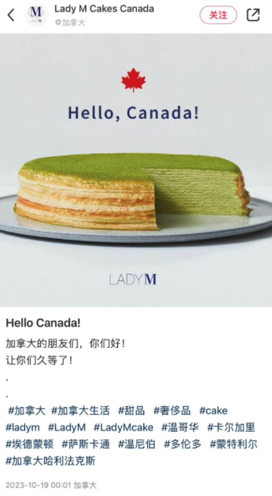 提到千层蛋糕,很多人都会想到Lady M,因为Lady M在坊间被誉为“蛋糕界的香奈儿”,它的定位是“纽约最受欢迎的蛋糕品牌”。 然而,这家美国的蛋糕品牌,在开到了多个亚洲地区之后,却迟迟不来好邻居加拿大。这让很多加拿大人想吃也只能找代购,或者花大额邮费空运。 直到今天(10月19日),Lady M在小红书等多个平台,突然官宣了来加拿大的信息。 ![]() 图源:小红书 从加拿大的官网来看,蛋糕的售价Lady M还是一如既往的......贵。 ![]() 图源:Google Lady M在加拿大官网销售的千层蛋糕,并不会单片售卖,完整蛋糕的价格为148刀,多种口味的拼盘价则高达171刀。 ![]() 图源:Lady M 除此之外,还有两款点心礼盒售卖,价格也不便宜。 ![]() 图源:Lady M Lady M将开到加拿大的消息公布之后,不少网友发帖表示期待已久,希望能有门店开到多伦多或者温哥华。 但更多的网友则在吐槽Lady M是“过气网红”。 一位网友说:“一个美国品牌,来中国的小红书,告诉我们他要在加拿大开店了,这个世界太魔幻了。” 还有人说:“国内的都倒闭了,转移到加拿大来了?” ![]() 2017年,Lady M在上海国金中心开了中国大陆的首家门店,并从此打开了华人市场。 据报道,在Lady M国金中心店,Lady M的经典千层蛋糕每片售价68元人民币,但黄牛将原本68元至75元一片的蛋糕价格,哄抬到了150元至180元的高价。 据报道,当时每天都有300多人排队买蛋糕,由于店门口排队的顾客和黄牛太多,甚至一度被警方要求暂停营业。 大家期待吗? |