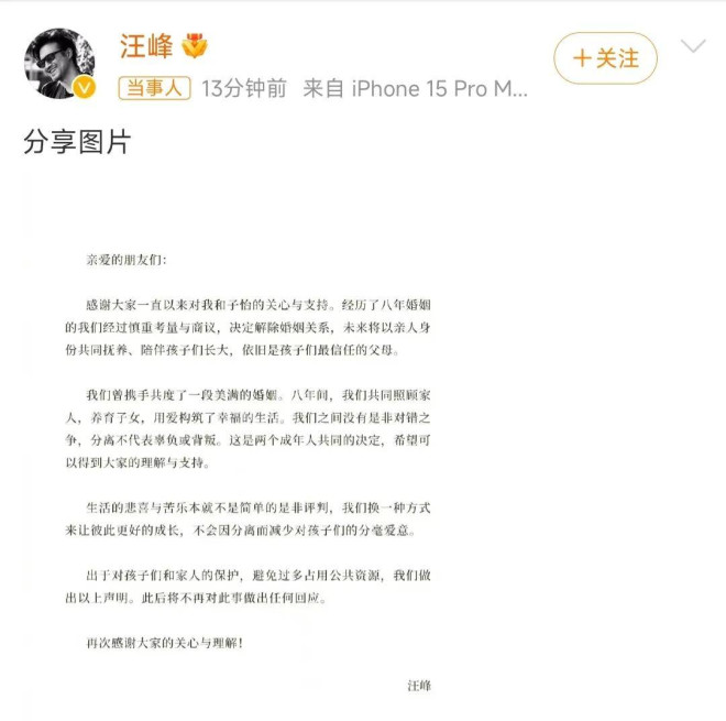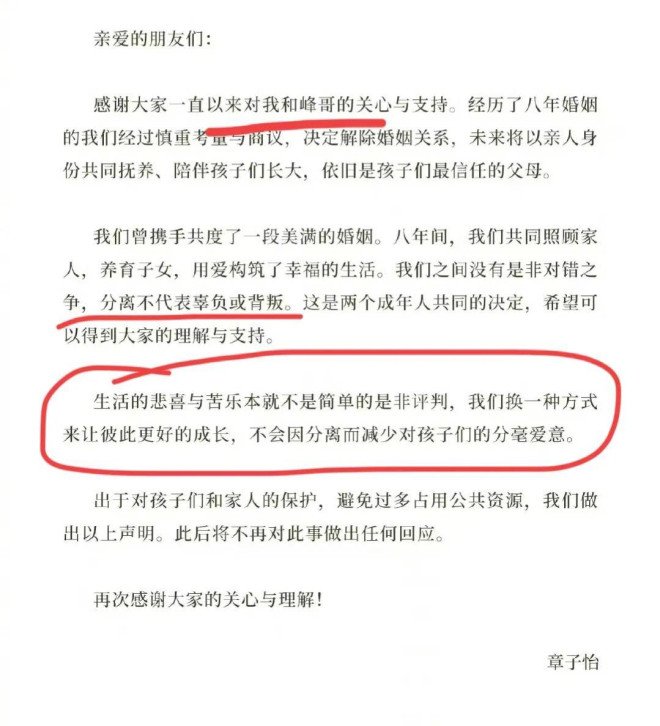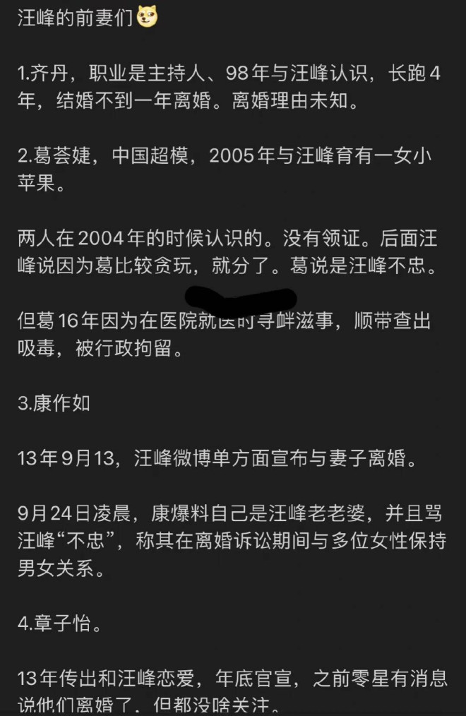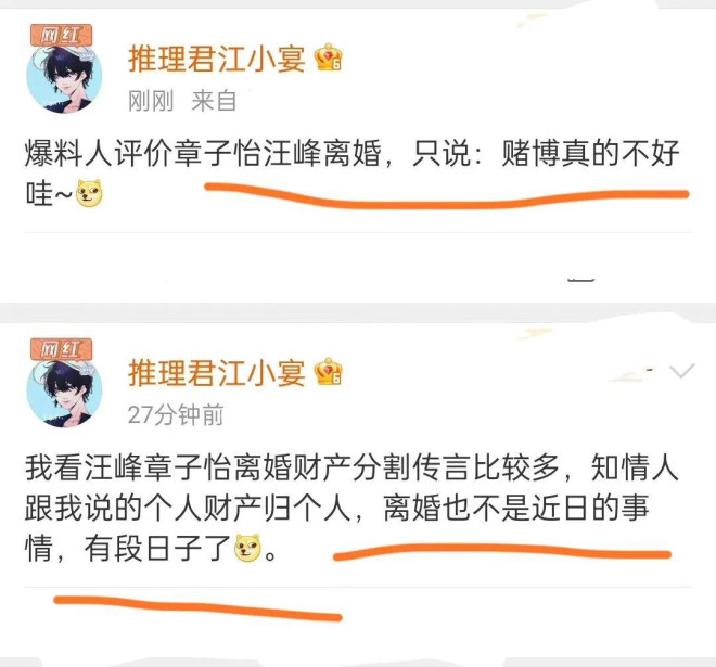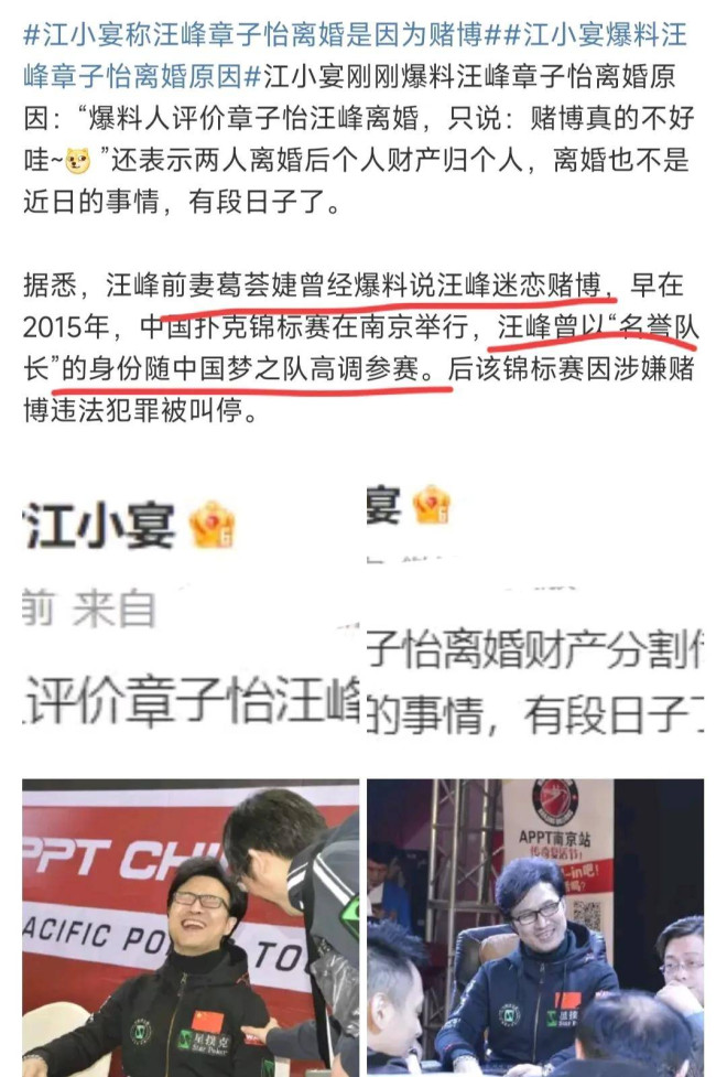 根据娱记的最新爆料,汪峰章子怡离婚已经有一段日子了,赌博不是好东西。 ![]() ![]() 汪峰前女友葛荟婕就曾经爆料说汪峰这个人特别喜欢赌博。 卓伟也曾爆料说汪峰是赌坛先锋,气的汪峰把卓伟告了,但最后输了官司倒是汪峰。 ![]() 正在忙着直播事业的葛荟婕,会不会向张兰一样懂得蹭热度 ![]() 当年,有消息称,汪峰还陪着章子怡的母亲打过牌。他还当过扑克牌锦标赛的荣誉队长。 ![]() 既然说了没有出轨,那么赌博就极有可能是一个女人最后选择和一个男人最终分开的合适理由。 ![]() 蔡明曾在央视春晚表演小品《想跳就跳》时,留下过一句经典台词: 都是千年的狐狸,你跟我玩什么聊斋。 ![]() 10月23日下午,章子怡汪峰正式官宣离婚,落实了此前娱记的爆料。 在离婚声明中,夫妻俩极尽体面之能事。 没有一句恶言,章子怡甚至还维持了她在婚姻最幸福时对汪峰的称呼:峰哥。 ![]() 这对离婚夫妻把自己当下的状态,定义为: 我们之间没有是非对错之争,分离不代表辜负或背叛,这是两个成年人共同的决定。 ![]() 草拟这份声明的人,不知道是不是章子怡、汪峰本人,总之这份离婚官宣声明,在公关角度,确实很成功。 ![]() 声明中,还强调,生活的悲喜与苦乐,本来就是一道简单的是非对错题,眼下的分开,是为了他们彼此未来更好的成长,对两个孩子来说,也不会因为父母的离异,而得不到更好的爱。 ![]() 他们会以亲人的身份,共同抚养和陪伴孩子们长大。 离婚声明一发,章子怡的社交平台,顿时挤满了网友们的祝福声,反倒是汪峰那边,承受了无数的骂名。 ![]() 毕竟,他人生走过一半,就已经离了3次婚了,又屡次被前任们锤婚内出轨,实在是网友找不出什么不骂他的理由。 有人深扒章子怡、汪峰的离婚时间线时发现,疑似在去年11月、12月的时候,双方就已经感情不在了。 ![]() 去年12月21日,章子怡在澳门国际电影节上台领取最佳导演、最佳女主角两项大奖时,就已经悄悄摘下了婚戒。 ![]() 而汪峰手上褪下婚戒的时间更早。早在去年11月初,汪峰工作室发的汪峰个人宣传照里,汪峰手上的婚戒,已经被一枚装饰戒指取代了。 ![]() 要知道,两个人都是仪式感非常强的人,以往在任何重要的公开场合,都能看到他们婚戒在手。 ![]() 而在往前追溯,在汪峰去年6月份在自己的社交平台上晒出的一家几口人的合照中,尽管章子怡身处合照的边缘位置,甚至脸上都挤不出一点笑意,但是她无名指上的婚戒,还是很显眼的。 章子怡的肢体语言是一个人抱着自己,很疏离 ![]() 至少在2022年的6月份,汪峰和章子怡还没有离婚。 夫妻在婚后,参加过芒果台的热门综艺《妻子的浪漫旅行》。 节目中,汪峰和章子怡无疑是所有明星夫妻里,最受人关注的一对,他们的一举一动,一言一行,都会被网友们放大了去理解。 ![]() 汪峰屡次深情地向章子怡表白,并表达了两个人要一起陪伴孩子长大,直至他们俩年老相随,而到那个时候,汪峰也会用心呵护爱妻章子怡的。 ![]()