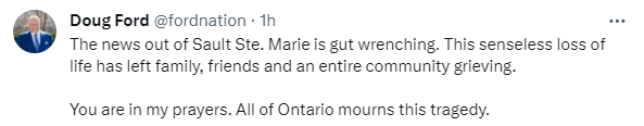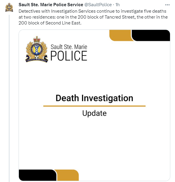 周一晚上,位于安省Sault Ste. Marie镇居民区发生一起枪击暴力案件,总共造成5人身亡,包括3名儿童。还有1人中弹,正在医院接受治疗。 ![]() 图源:CTV 据CTV报道,此案发生于安省北部的一座小镇。当晚10点20分左右,警方接到报案说,有人闯进一栋位于200 block of Tancred Street的民宅。 警方来到现场后,发现屋内有一名41岁人士中枪身亡,枪手在警方抵达前已经离开。 10分钟之后,警方又接到报案说,有人持枪闯入200 block of Second Line East上一栋民宅。值得一提的是,此处距离不久前附近发生的枪案仅3公里远,大约5分钟车程。 ![]() 图源:googlemap 警方抵达后在这栋民宅发现一名45岁伤者中枪。受害者已经被送往医院,受重伤,暂时没有关于其伤势的进展报告。 但是警方在进一步检查这栋民宅时发现,屋内还有3名儿童,他们分别为6岁、7岁和12岁。不幸的是,3名儿童均已遭枪杀。 警方在通报中确认,44岁的枪手也在屋内被发现。警方到场时他已经开枪自杀身亡。 警方称,这两起事件是相互关联的,而且是亲密伙伴关系暴力案件升级的结果。因此警方不会透露被告和受害者的姓名。 但警方指出,这并非随机暴力行为,因此对公众没有正在发生的威胁。 ![]() 图源:X “我们的社区对这起悲剧的发生和不必要的生命逝去,” Sault警察局长Hugh Stevenson在新闻稿中表示。 “受害者的亲友挚爱们所承受的哀伤是难以想象的。我们的心与他们同在。在我们社区为这起事件默哀的时候,我呼吁每个人关心身边的人。如果你正经历困难或痛苦,或者如果你看到有人正处于痛苦的状态,请到我们的社区寻求精神健康支持。” 此案仍在进一步调查中。 居民Tyson Jikinosky在附近的一家汽车修理厂工作,他说在周二早上,该地区仍然有警力驻守。 他说他是通过新闻得知所发生的事情,这让他感到震惊。 “这是一个非常非常非常不堪的场景,” 他说道。“我住在几个街区之外。这是一个相当小的城镇,所以我们都非常亲近。” Algoma区教育局表示,他们对Sault Ste. Marie地区3名学生的丧生感到悲痛。 该局的教育主任Lucia Reece在一份声明中写道,“整个Algoma区教育局社区都心碎了。” “我们在受这场悲剧影响的学校安排了心理咨询师和支持人员……我们的思念和祈祷与所有受影响的人在一起。” Sault Ste. Marie市长Matthew Shoemaker称,所发生的事情是“无法言喻的悲剧”。 他在一份声明中写道,“没有言语能够充分表达如此巨大的损失。” “我向受害者的家人和亲人致以我们社区的共同哀悼和支持……我们与他们一起悼念,同时试图应对这种难以想象的暴力行为。” 市长称Sault Ste. Marie是一个“强大而关爱的社区”,并鼓励居民相互支持。 安省省长随后在社交媒体X上对此事回应说,“Sault Ste. Marie传出的消息令人担忧。这种无端夺取他人性命的事件已经让他们的家人、朋友以及整个社区感到痛心。我会为你们起到。所有安省居民都为这起悲剧哀悼。” ![]() 图源:X