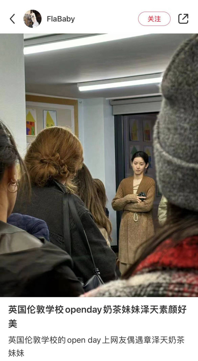 11月3日,有网友透露在英国伦敦某学校的开放日偶遇“奶茶妹妹”章泽天。 ![]() 许久不见的小天,显得有些憔悴,出生于1993年的她,今年刚好30岁。 ![]() 章泽天身穿咖啡色长毛衣,素颜露面,虽然不及化妆后亮丽,但她底子好,脸型流畅脖子修长,身材纤瘦皮肤白皙,妥妥的大美女。 ![]() 图中的她,气色好像不太好,不过有网友认为,大家看多了滤镜里面的假素颜,忘记了真正的素颜都像章泽天这样,其实她五官还是非常精致的,只是被抓拍的时候,表情没有管理好。 ![]() ![]() ![]() 事实上,章泽天已经完成学业,网友猜测,她应该是带大女儿参观当地的小学。 ![]() 从网友公开的图片看来,这所学校确实有些童趣元素,墙上贴着简笔画,而现场也有一些小孩与父母同行。 ![]() 章泽天在2015年嫁给企业家刘强东,翌年3月生下女儿,算一算时间,孩子现在刚好7岁,正是上小学的年龄。 ![]() 此前,曾有网友在外国偶遇章泽天母女,小女孩长得相当水灵,身边有一位家庭教师跟着,方便她随时随地学习外语。 ![]() ![]() |