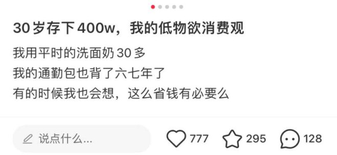 01破案了家人们,找到我至今未能成为百万富翁的原因了。事情是这样的:刷到一个上海博主,她和丈夫今年30岁,自称存款已经达到了400万。 于是发了一系列爆款视频,说要教大家0门槛攒钱大法。 ![]() 毕业8年,2人400万。 等于说是在上海这么一个高生活成本的地方,俩人每年刨去开销还能存下50万。 那肯定是有什么好路子,起码一年赚好几十个W啊。 这我哪能错过,兴冲冲点开准备大学特学。 结果博主给出的方法,三个字:低欲望。 ![]() 博主总结,存款少,是因为现在的人欲望太高太爱买买买了。 所以她洗面奶只买30块一支的,一个包背六七年不换。 总之要省钱,然后就可以轻轻松松存下400万啦。 ![]() 嗯……可是说实话这年头大家都多多少少消费降级了。 谁不是买个卫生纸都要货比三家,再小的消费也要蹲点抢券以求实惠。 我这个老烟民,烟也戒了,游戏也不玩了,能压缩的开销早都压缩了,也没攒到几百万。 哭了,难道因为我还不够抠? ![]() 有人教粉丝怎么在大学毕业前存下50万。 ![]() 内容大差不差,都是告诫大伙要少花点,要像他们一样精打细算,自然就能省下巨款。 虽然我也赞同花钱要理性。 但能花的这个钱是怎么来的,他们是一句不提啊。 而这样的视频动不动还都有几十万点赞。 他们口中的低欲望生活,原来意思就是:大马哥小马哥都是抠门抠成首富的。 ![]() 可仔细想想,我们普通人,能有多大的欲望呢? 无非是有个温暖的屋檐,孩子能快乐成长,父母能健康养老。 但这每一样平凡的“欲望”,单拎出来都足够掏空我们的钱包。 我们不是做得不够好,只是有时候,收获和努力并不一定会成正比。 ![]() 但很多人过惯了轻松的生活,已经不在意普通人的人生是什么样子了。 某购物平台上标价个位数、两位数的羽绒服,随便点开个链接就是几千几万个已购买。 有人却说大部分人没有存款,是欲望太高。 ![]() 20多岁的毕业生和35岁的中年人同样难找工作。 有人却说年轻人脱不下长衫:“私家车用来跑跑滴滴,空房子拿来收收租”,不就能增加收入了吗? 听起来是为你好,但真的别信这种毒鸡汤。 吃饱了的人,凭什么打着嗝笑还饿着肚子的人? 起点高的人,凭什么说后面的人跑得还不够快? 坐拥常人难以企及的资源,然后买几样价格亲民的东西,就说自己的钱都是省出来的。 那不叫低欲望,叫不老实。 ![]() 02以前我们听过信过许多让人热血沸腾的毒鸡汤,后来都自诩不信了、免疫了。 但现在网上还是经常冒出些金句、热门文案。 我们照样深信不疑,跟风转发。 不知不觉,又在被毒鸡汤洗脑。 你一定听过那句话:勇敢的人先享受世界。 具体就是,有人突然受够了上班,烦透了996,于是说裸辞就裸辞了。 然后去了西藏、冰岛,玩蹦极、滑雪。 ![]() 或者是有人刚毕业不想找工作,干脆花一年时间环游世界。 去过的国家有些我连名字都没听过。 ![]() 每一个“勇敢”的博主都在告诉我们,真正的生活,是要去撒哈拉沙漠看星星,是要去东非大草原看动物迁徙。 羡慕,真羡慕,这才叫享受人生啊。 光听着就心潮澎湃,恨不得立马关电脑买票走人。 可博主们没说的是,自由背后的机票钱、酒店钱、吃饭钱哪里来。 也没说一走了之时肩上卸下的责任,能放到哪里去。 他们没说自由背后,靠的是足够的物质底气,才可以一怒之下说走就走。 我们普通人跟着学,结果一怒之下也就只是怒了一下而已。 ![]() 当然了,人家有资格享受生活享受自由是人家的事。 可问题是,他们却将一切归功于……自己的勇敢? 原来我们每天累死累活上班,为了仨瓜俩枣心脏都要停了,是因为不勇敢。 原来我们不去看火山,不去看大海,不去环球旅行,是因为害怕。 我又哭了,原本以为自己只是单纯的穷。 没想到现在变成了又穷又怂。 ![]() 想起前阵子看到@农村妮 的视频。 那个35岁的农村妈妈,一滴一滴流着眼泪。 她只能围着丈夫和儿女转,被灶台和玉米地围困。 她也想出去玩,也想去旅游,可是她哪里都去不了。 ![]() ![]() 还有上个月,那个在停车场里离世的内蒙货车司机。 在死去之前,他跑云南、跑西藏、跑贵州。 饿了用随车带的锅煮饺子、煮挂面。 天热就睡在车上,天冷就住几十块的小旅馆。 吃喝睡乃至死亡,都没离开这个移动的小房子。 ![]() 他们不享受生活,不寻找自由,是因为不勇敢吗? 那些漂亮的网络文案,听听就好。 能随时斥巨资说走就走的人,根本不是勇敢,只是足够幸运。 而即便疲倦仍在抵抗风雨、与生活对线的人,谁能说不也是一种勇气? 03还有所有鸡汤里我最讨厌的:教人吃苦。 也不知道从什么时候开始,网上流行起一种“流量密码”视频。 民工打扮、满头大汗的父亲,一边气喘吁吁,一边跟孩子说: “儿啊,爸不热。” ![]() 说着自己累死累活,只赚了点小钱。 但为了给孩子还花呗、买手机,再苦都得受着。 |
