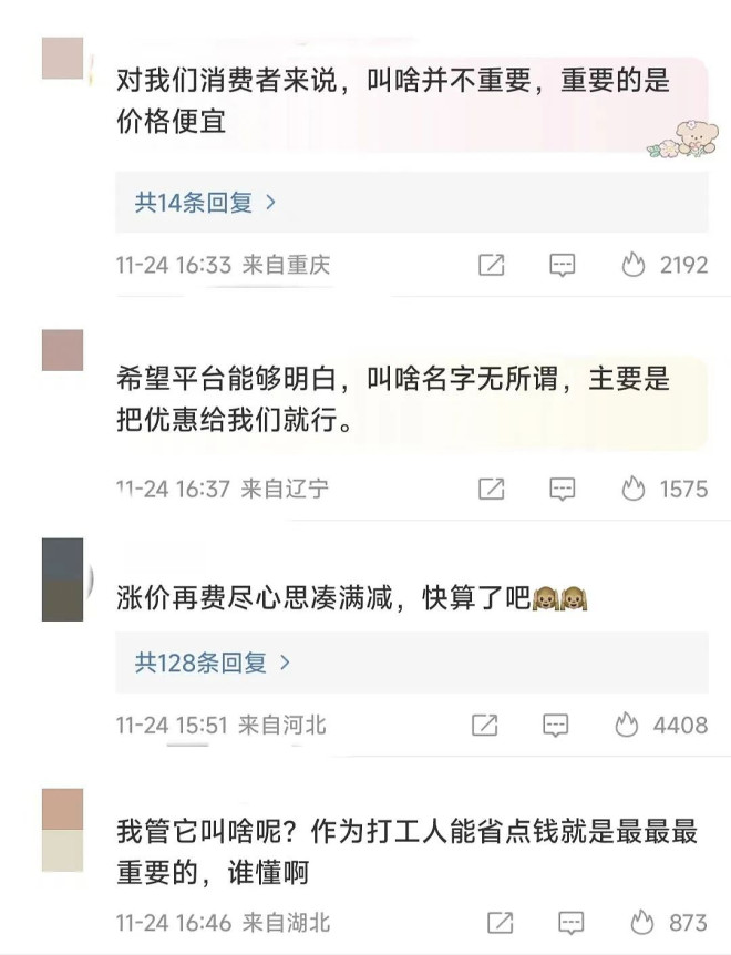 据悉,淘宝好价节并非新产物,在今年618时,淘天集团就推出了淘宝好价节,这也是淘宝天猫618历史上第一次专门针对淘宝商家生态所推出的专属场域和营销通道。该营销通道主要是围绕性价比需求,因此为淘天集团吸引了更多下沉市场和年轻用户的来访和购买。 ![]() 淘天集团表示,在双11平销期,好价节为中小商家带来爆发式增长。淘宝举办年终好价节,是对好价节的延续和加码,为各类商家创造更大的增长机会。 2011年,淘宝在12月12日上线“全民疯抢”活动,当天交易额达到43.8亿元,但在之后的发展中,前有双11压场,后有各类线上线下的年终促销活动,双12声势渐弱,阿里也已连续多年不公布双12的成交额。 阿里发布的财报显示,截至9月30日止三个月,淘天集团合计收入为976.54亿元,同比增长4%。 财报显示,本季度淘宝APP用户数、交易买家数、订单量持续增长,88VIP会员同比呈两位数增长,规模超3000万。 ![]() 双12取消的话题 引起网友热议 有不少网友觉得是该取消了 “双11都没什么人买” “优惠力度不行” ↓ ![]() ![]() 还有网友觉得双11、双12 “预售、订金这一套很不友好” ↓ ![]() 但更多网友在淘宝回应后 都发现了其“换汤不换药” ↓ ![]() ![]() 大家纷纷表示: 只要平台优惠力度到位就行 至于活动“叫啥名字无所谓” ↓ ![]() 对于“双12”活动取消, 更改为“淘宝年终好价节” 坊友们怎么看? 你的购物车清单里还有什么好物呢? 评论区来说说! |