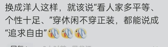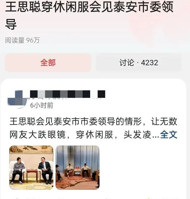 近日,一张王思聪与泰安市委领导见面的照片,引发网友热议。 ![]() 照片中,王思聪身穿灰色T裇黑色休闲裤,脚穿球鞋。 ![]() 泰安 另一张更夸张身着短衣短裤。 ![]() 大连 先来看看评论区网友的精彩评论。 ![]() ![]() ![]() ![]() 此前,王健林马云在某个颁奖现场遇见,两人的穿搭也是天差地别的两种风格。王健林穿着全套西服,领带系得也是一丝不苟。而一旁的马云穿的是一件蓝色上衣和白色裤子,再搭配上一条围巾,非常的“居家”。 ![]() 而王思聪此次的穿搭在照片中也是“独树一帜”。有的网友说,王思聪穿休闲装去见市领导“体现了他的自信和从容,是一种积极的形象。也符合他一贯的风格”“我行我素挺好的,挣脱传统的枷锁和礼仪的束缚。” 也有其他声音表示,什么场合穿什么样的服饰,不仅是对自身的要求,也是对他人的尊重。 |