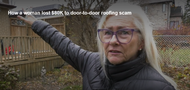 士嘉堡一名女士称,她在向一家屋顶公司支付了8万加元后感到震惊和愤怒,因为该公司声称她的屋顶有问题,但实际上这些问题根本不存在。 ![]() 图源:CTV Judy Poirier说,我的屋顶没有任何问题,没有漏水也没有故障,但他却说服我相信我的屋顶状况极差,可能会塌陷。 Poirier说,去年11月,有人敲响了她的门,告诉她看起来她的烟囱有问题,而她对此是知情的。尽管承包商以合理的价格完成了烟囱的修复,但Poirier说,有一天承包商登梯子检查时称她的屋顶状况很糟糕。 Poirier说,当他在那上面时,他说屋顶感觉有点松软。于是,他撕掉了一些屋瓦并说,是的,你这里有些损坏。 据Poirier称,承包商声称他认识一位能立即进行修复的屋顶工人。当屋顶工人到达时,他告诉Poirier她的屋顶状况非常糟糕。 ![]() 图源:CTV 屋顶工人说这可是一个大工程。这里的损坏远比我们想象的要严重。他告诉 Poirier说,屋顶存在霉菌和其他损坏,会导致天花板坍塌。 Poirier表示屋顶工人最初的报价为1万加元。然后,金额跳升了4万加元,随之再增加了3万加元,总共达到了8万加元。最终,Poirier说他们试图让她支付12.5万加元。 ![]() 图源:CTV Poirier已经支付了8万加元,她对此开始产生怀疑。因此,她召来另一位屋顶工人进行检查,后者却告诉她屋顶并不需要修复。 在此期间,她的屋顶已经被掀掉,她不得不另请一家屋顶公司进行修复,这又花费了5,000加元。 Poirier说她告诉最初的屋顶公司停止对她家的工作。自从他们离开后,她说他们留下了一些工作用的设备,然后切断了所有联系,不再回复Poirier的电话。多伦多CTV新闻无法联系到该屋顶公司,因为Poirier除了他们的电话号码外没有公司的任何信息,而且他们也不再接听电话。 ![]() 图源:CTV Poirier报了警。多伦多警察局告诉CTV新闻,今年已经有几起多起屋顶欺诈的投诉。 在一份新闻发布中,多伦多警方表示要警惕门上门销售,不要被迫迅速做出决定,并在进行屋顶工作之前仔细研究公司,以避免上当受骗。 警方说永远不要提供大额预付款或在工作完成之前提前付款。 在她的银行进行调查后,Poirier说她已经设法追回了部分支付给骗子的资金,并表示她希望分享自己的故事来警示他人。 Poirier说,如果他们来到你家门口并试图施加压力,请立即停止交谈。不要继续下去,不要让他们用恐吓手段把你牵扯进去。 |