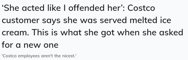 “她表现的好像是我冒犯了她。” 上周末,TikTok上的一位用户讲述了她在Costco的一次不愉快经历,服务员给了她一个已经融化的冰淇淋,当她要求换新冰淇淋时,得到的结果却差点把她气哭。 ![]() 图源:dailydot TikTok网友Vivi Kim(@howwyoobin)在一段视频中说,她去Costco购买新推出的草莓香草口味冰淇淋。下单后,Kim说柜台工作人员收了她的收据后,并没有走向冰淇淋机。 Kim说:“她走到冰箱或冰柜前,拿出一个已经放在里面的杯子。我当时就在想,'咦,这是怎么回事?” ![]() 图源:@howwyoobin 经过进一步检查,Kim说她发现这杯冰淇淋不仅不新鲜,甚至已经是融化成液体了的。 虽然Kim说她通常不是那种会抱怨的人,但这次事件让她“很受伤”,委屈到“差点在Costco的中央哭了起来”,因为自这个产品上市,她就一直期待尝到这个冰淇淋。 “她把融化的冰淇淋放在一个杯子里给了我,这显然是上个顾客不要的。” ![]() 图源:@howwyoobin Kim当时对服务员说:“呃,不好意思,这个冰淇淋有点融化了。我能换一个新的吗?” “她看着我的眼神,就像我在向她索要她的宝贝儿子一样。” 据称,这名员工随后给她做了一杯乱七八糟的冰淇淋,“甚至都没有装满”。 虽然Kim很高兴能吃到冰淇淋,但这次经历让她质疑自己到底做了什么才会引发那样的反应。 她解释说:“我被那样对待,我很受伤,我做了什么?我对你做了什么?我是不是对你说话的语气不对?” 在评论区,许多网友表示,Kim应该向Costco报告这个问题。 “给Costco发个关于那家店位置的在线反馈!他们需要知道。”一位网友说。 ![]() 图源:@howwyoobin “如果是我,我会直接去找商店经理,让他们看看!下次一定要这么做!” 另一位网友说。“我真搞不懂这些人。这又不是她的钱,为什么要给顾客别人不要的冰淇淋?” ![]() 图源:@howwyoobin “Costco的服务不总是最好的,他们工作很辛苦,所以我理解他们压力很大。” “你站出来为自己说话很好,你没有做错什么,她的态度与你无关,是她自己的问题,不要责怪自己。” ![]() 图源:@howwyoobin Kim在评论中写道,她已经在Yelp上留下了负面评论,并通过公司网站提交了一份声明。 The Daily Dot通过Instagram直接联系了 Kim,并通过媒体申请表联系了 Costco。 |