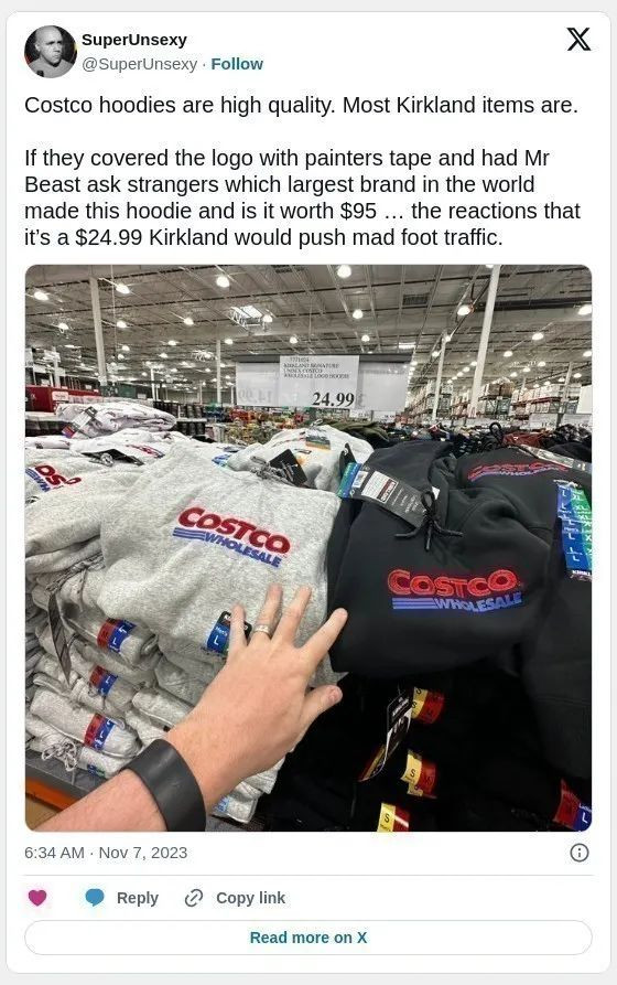 说到买衣服,Costco 可能不是各位的首选之地。 不过,近年这家以仓储式折扣优惠闻名的大型零售商似乎受到了时尚购物者的欢迎,在抖音 TikTok 越来越火,甚至还有自己商标Logo帽T。 ![]() 这款Logo帽T甚至和圣诞节有一种莫名的搭调。 ![]() 只是穿上到Costco转一圈,不知道还以为是Costco员工。 就连狗狗的衣服都有Costco的Logo,好夸张! ![]() 其实,Costco仅服装销售这一项业力,每年就高达 90亿美元,销售的衣服比 Lululemon、Ralph Lauren 或 Levi Strauss 还要多,不服不行! ![]() 《华尔街日报》甚至发起Costco的衣服是否物有所值的调查。 ![]() 考虑到人们大多去 Costco 购买大包装的橄榄油和花生酱,Costco 的时尚品味确实令人惊讶。那么它让人们如此钟爱的地方到底是什么? 以下financebuzz列出的人们喜欢在 Costco 买衣服的十大最令人惊讶的原因。 ![]() 人们喜欢在 Costco 买衣服的 10 个原因 1.价格实惠 人们去 Costco 购买服装的主要原因之一是价格实惠。 作为一家仓储零售商,Costco 批量购买并让会员节省费用是一种行之有效的策略。 该零售商还将其加价上限限制在 15%,这意味着您只用其他商店(尤其是精品店)价格的一小部分就能买到同样的衣服。 2、品质好 和“实惠的价格等于劣质”的观念相反,Costco 致力于库存优质服装,也让购物者感到意外。 这是因为Costco从信誉良好的制造商那里采购货物,确保会员获得耐用且制作精良的服装。 和您在其他地方买到的快时尚服装不同,即使是 Kirkland Signature 商店品牌也提供经得起时间考验,不会轻易缩水或松垮。 3. 实用 Costco 专注于库存经得起时间考验的功能性和多功能单品。 无论您需要工作、运动还是休闲外出的服装,都可以在Costco找到一系列实用的衣服,当然晚礼服或精美的正装就不要去Costco。 特别是对于基本用品尤其有用,可以为全家人大量储备。 4.品牌 该折扣店还出售 Calvin Klein、Nike、Adidas 和 Eddie Bauer 等知名品牌的时尚服装,享受与豪华品牌相关的地位和风格,但价格上有大幅折扣。 ![]() 5.慷慨的退货政策 您可能已经注意到,Costco 没有试衣间,可能很难试穿某些商品,例如泳衣。 幸运的是,Costco 拥有极其慷慨的退货政策,因此您只需购买所需的商品并回家试穿即可。 如果出于任何原因不合适或者您只是改变了主意,您可以将商品退回以获得退款或换货,无需提出任何问题。只是不要滥用该政策。 6. 很多选择 在Costco,你能找到大码男士衬衫、小宝贝的衣服、可爱的泳衣.....Costco 很可能有您想要的东西。 该零售商迎合每个人群的需求,因此无论您的年龄、体型或性别如何,您都可以找到您想要的服装。 7. 多种库存商品 如果您是那种会购买多条完美合身牛仔裤的人,Costco 就是一个购物的好地方。 Costco的桌子上通常会堆放许多相同的衬衫或短裤,因此您只需找到适合尺码的服装即可。 8. 衣服舒适 对于服装来说,舒适度是关键,Costco 在这方面表现出色,包括柔软的面料、宽松的版型和舒适的设计。 其中包括合身但看起来像是由高端品牌制造的运动休闲服,这些运动休闲服在大流行封锁期间风靡一时。 您还可以在 Costco 找到舒适并耐磨的鞋子。 9. 耐用性 人们对服装的常见不满之一是其使用寿命有限。但是,Costco 的服装经久耐用。 由于注重优质材料和结构,Costco的服装能够承受频繁的穿着和护理。 从长远来看,投资耐用的衣服不仅可以为您省钱,还可以减少频繁更换的需要,从而减少浪费。 10. 店铺销售 Costco 定期促销可以为会员提供一些非常大的折扣。本来价格就已经相当低了,还有打折的时候。 您还可以判断某些商品是否已经以成本价出售,如果价格以 87 结尾,这将是你能买到的最好价格,所以赶紧下手。 当然,Costco 作为一家大宗零售商,以提供物有所值的产品而闻名,但也有人认为在Costco购买一些服装可能是浪费钱。 和任何其他零售商一样,Costco也不能幸免于偶尔出现价格过高的商品——由于该商店的主要重点是大宗商品和杂货,其在时尚行业的专业知识可能无法与专业服装店或在线零售商相媲美。 因此,您可能会发现自己为类似商品支付的费用比其他地方更高,即使是Costco)很实惠的服装,如果质量很差而且穿不了多久,也可能不值得。 Costco避免购买的五种服装 以下就是雅虎财经列出的Costco 应避免购买的五种服装。 ![]() 基本款 T 恤多件装 Costco 以具有竞争力的价格提供多件装基本款 T 恤。虽然看起来很划算,但面料和缝线的质量往往很差。这些 T 恤会很快变形和褪色,从而缩短使用寿命。如果您正在寻找耐用、持久的基本款,从长远来看,投资更高品质的 T 恤可能更具成本效益。 运动服套装 虽然 Costco 以实惠的价格提供一系列运动服套装,但质量并不总是和价格相符。某些套装中使用的面料可能很薄并且容易撕裂,尤其是在剧烈锻炼期间。相反,请考虑投资知名运动品牌的运动服,这些品牌优先考虑性能和耐用性。 设计师牛仔裤 Costco 偶尔会出售知名品牌的设计师牛仔裤。然而,通常仅限于几种款式和尺寸。 虽然以折扣价拥有名牌服装的诱惑很诱人,但这些合作单品往往缺乏主线服装设计师对细节的关注,无法的所提供的质量和合身性相匹配。 如果考虑合身且适合您体型的牛仔裤,可能需要到专业牛仔服装商店或拥有更多品种的零售商购买。 冬季外套 虽然Costco的许多冬季外套价格都很有吸引力,但评估这些商品的隔