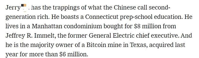 最近,一起诉讼,意外曝光了美国一位23岁中国留学生不为人知的秘密。 这名学生叫Jerry,谁也没想到,年纪轻轻的他竟然拥有德州一座比特币矿场,公开资料显示,这个矿场去年以超过600万美元的价格被收购。 ![]() 图片来自yahoo,版权属于原作者 但Jerry的殷实身家远不止于此,纽约时报更直指Jerry拥有中国人所说的富二代特征。他拥有康涅狄格州的预科教育背景,以及超级有钱。 ![]() 目前,他是纽约大学一名学生, 平日里他都住在曼哈顿自己一套价值800万美元的公寓里。 ![]() 这套公寓并不是租的,而是Jerry之前斥重金从通用电气(General Electric)前首席执行长伊梅尔特(Jeffrey R. Immelt)手中买下的。 ![]() 600万美元买矿场,这么大一笔资金转移, 他是如何神不知鬼不觉把钱偷 偷搬到美国,而不引起中美 两国当局注意呢? 中国留学生$600万收购比特币矿场 答案,竟然藏在比特币里。 在传统的交易中,接收资金的银行会知道资金的来源,并依法向美国财政部报告任何可疑活动。 然而Jerry的收购并没有直接付美元,而是通过加密货币购买的,由于加密货币具有匿名性,交易通过离岸交易所进行,任何人都无法知道资金的来源。 这样他就可以避开美国银行系统和随之而来的美国联邦监管机构的监督,偷偷把钱转移到美国,以为这样就能瞒天过海。 但若要人不知除非己莫为,一起诉讼就让把他的秘密公开了。 在币圈,矿场是产生加密货币(主要是比特币)的一种方式,德州这个比特币矿场BR(化名)实际上是一个大型计算机中心,建在一块开阔的土地上,由几十座建筑组成,里面容纳了6000台专用计算机。 这些计算机日夜运转,试图猜出正确的数字序列,从而获得新的比特币,目前每枚比特币价值超过 4 万美元。 Jerry身份意外曝光,源于一起官司。 另一家总部位于德州的公司 Crypton Mining Solutions 把Jerry告上法庭,指控Jerry的背景深不可测。 然而这起诉讼没有提供证实这些关系的确凿证据,而公共资金的踪迹最终止于加密货币交易所币安。币安通过使用一种名为 Tether 的加密货币并通过离岸交易所进行交易。 然而最近,币安被查,美国政府称,交易时,币安的离岸业务并未遵守美国银行业规则。 上个月,币安承认违反反洗钱法规,并同意支付超过 43 亿美元的罚款。这起联邦案件的核心是币安没有严格验证客户的身份并标记可疑的资金转移。 对于 Crypton 提起的这起官司,Jerry公司BR的律师加文·克拉克森 (Gavin Clarkson)表示,公司“遵守所有必要的联邦、州和地方法律法规,包括银行法律法规”。他声称,Crypton 的说法,包括没有为矿场服务付费的指责,都是“毫无根据”。 “BR是被欠钱的,而不是相反,”律师加文说Crypton 的诉讼存在“重大过失”,已对它提出反诉讼并要求赔偿 75 万美元。 但是矿场现场的工人却有不同说法。布伦特-劳德(Brent Loudder)负责监督 Crypton 的电气和管道工程,他说承包商在获得报酬方面存在问题。 “承包商们在通过停工来抗议之前一直拿不到工资。电气承包商 Panhandle Line Service 也因薪酬问题与BR展开了诉讼和反诉讼。” ![]() Crypton 的律师David Huang与《纽约时报》分享的文件显示了BR购买德州比特币矿场的过程: 卖方 Outlaw Mining 将获得 633 万美元的 Tether。Tether 的价格固定为 1 美元,使用 Tether 可以获得其他加密货币的匿名性,而不会像某些加密货币那样出现价格波动。 不过,这笔资金来源并没有公开记录,只有处理交易的交易所币安知道。克拉克森表示BR本身从未通过币安发送或接收任何资金。 币安发言人 Jessica Jung 表示,来自三个币安账户的加密钱包发送了 Tether 付款,所有这些资金都属于外国人。她在一封电子邮件中写道:“币安没有也不为任何美国客户提供服务。网站部署了“严格”的程序来验证客户的身份。 纽约时报指出,使用 Tether 支付在比特币挖矿行业很普遍。阿肯色州的一名矿工表示,他使用 Tether 购买了一家中国公司生产的价值几百万美元的专用计算机。怀俄明州的另一名矿工说他也做了同样的事。这些交易的好处之一是可以避免销售税和资本利得税。 黄律师分享的一份文件确认了BR的一些股东的身份。除了Jerry之后,最大的投资者是来自加州圣马特奥市一家专注于中国的风险投资公司。 WireScreen 公司的记录显示,在Jerry的曼哈顿公寓抵押贷款文件上签字的两人,与一对中国已婚夫妇的名字相符,这对夫妇拥有价值超过 1 亿美元的公司股份,而其中一人也被列为BR的董事。 Jerry的律师克拉克森不愿证实BR股东的身份以及与Jerry可能存在的关系。 将矿场卖给Jerry的Outlaw Mining公司的创始人乔西·帕克斯(Josey Parks)在电话中表示,他无法对自己与BR之间的财务情况发表评论,因为他受到保密协议的约束。 “据我所知,Jerry是一名美国大学生,家庭非常富裕。”帕克斯说, “但我不知道他的投资者是谁,也不知道他与外国实体有什么关系。” 最后,奉劝大家切勿模仿,要知道阳光之下无秘密,国家外汇局一直持续打击非法买卖外汇,铤而走险后果得不偿失。 |