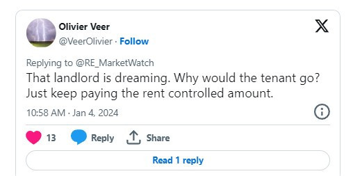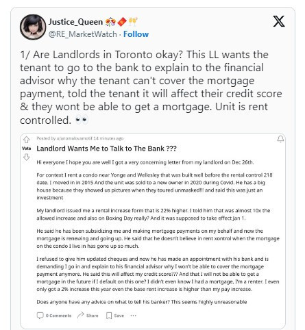 安省受租金管制的出租房今年允许涨租最高不超过2.5%,但是多伦多一位公寓租客最近发帖求助,原因是房东今年要涨租22%,几乎比安省规定标准高了10倍,而且房东还警告租客,如果不交租会影响租客信用分数,以后别指望贷款买房。 ![]() 图源:blogto 这个描述多伦多房东与他们的租客之间棘手且令人费解的情况的帖子在社交媒体上Reddit上流传开来。租客声称他们的房租被房东不公平地大幅提高。 ![]() 图源:51记者拍摄 这个已被删除的帖子现在被转发到了X上,帖子由一位住在Yonge&Wellesley街附近的公寓里的租客撰写,该公寓在2018年省租金管制实施之前就已建成。 ![]() 图源:blogto 根据这位匿名租客的说法,他们最初在2015年搬进了这个公寓单元,仅仅5年后,2020年,该单元就被卖给了新的业主。这位租客声称,刚刚过去的节礼日,他们的新房东告诉他们新的一年租金比他们之前的租金增加22%。 租客称他们指出了房租几乎是“允许涨幅的10倍”,然而房东辩称他一直在为租客提供“补贴”,在替租客支付房贷。 ![]() 图源:blogto 租客在帖子中写道,房东说因为我居住的公寓的房贷涨得如此之高,他不相信房租控制。 在拒绝交房租后,租客称房东与银行预约,并要求租客去银行解释为何他无法再支付房贷。 帖子中说,房东说这会影响租客的信用分数。并且如果租客拖欠了这笔款项,将来就无法获得抵押贷款。租客抱怨说,我甚至不知道我有房贷,我只是个租客。 ![]() 图源:blogto 这个病毒式传播的帖子在各种观点之间引发了讨论,大多数人利用这个机会提醒租客在这种情况下的权利。 一个人留言说,这太搞笑了。首先,你的房东真的不能做什么,这对你未来的抵押贷款也没有任何影响。看起来你的房东做了一个糟糕的财务决定,他似乎认为你不了解法律。 网友继续评论道,你绝对没有义务去银行。这与你无关,所以我真的不知道他们期望你说什么,因为你从所有权的角度来看与这个公寓没有任何关系。 ![]() 图源:blogto 另一个人指出,这个房东太强硬了,最让人惊讶的是双方对各自权利的缺乏了解。有多少人仅仅因为不了解自己的权利而支付了更高的房租? 根据安省政府的说法,大多数情况下,住宅单位的租金在至少过去的12个月可以自上次租金上涨或租期开始日期之后进行上涨。 然而,房东必须提前至少90天以适当的形式书面通知租客租金上涨的事宜,2024年的当前租金上涨指南为2.5%。 这个指南是房东在一年内提高大多数租客租金的最高限额,不需要房东和租客委员会的批准。 该指南适用于大多数受2006年《住宅租赁法》(Residential Tenancies Act, 2006)覆盖的私人住宅单位,例如住在租赁房屋、公寓、地下室公寓和公寓的人们。 自2018年11月15日后首次用于住宅目的的新建筑、现有建筑的新增部分以及大多数新的地下室公寓免受租金管制。 |