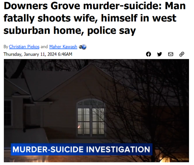 中国农历新年就要来临之际,华人圈发生了一起令人痛心的血案。 一对来自沈阳的夫妇原本叫朋友一起到新家家庆祝乔迁之喜,结果在暖房聚会中,夫妻二人发生肢体冲突,最终竟酿成了丈夫枪杀妻子后饮弹自尽的悲剧。 ![]() 周二(1月9日)晚间10点02分左右,伊利诺伊州唐纳斯格罗夫(Downers Grove,IL)警方接到报警电话称,位于唐纳斯格罗夫西郊的一所房子内,发生了一起严重枪击事件。 警方随后来到位于美景大道6400街区(Fairview Ave)的案发现场发现一名男子和一名女子中枪倒地。 经证实,两人系夫妻关系,丈夫是苏东伟(音译:Dongwei Su,现年42岁),妻子是隋亚坤(音译:Yakun Sui,42岁)。 现场目击证人包括死者夫妇的2名友人,以及死者夫妻未满20岁的儿子。 经初步调查,警方确认该案件是一起谋杀-自杀案件,妻子隋亚坤背部中了2枪,而丈夫苏东伟在枪杀妻子后,饮弹自尽。 警方称该案件由家庭暴力所引起,现场惨烈到警方竟花费了整整14个小时才清理干净,目前案件仍在调查中。 ![]() 邻居利奥·康纳汉(Leo Conaghan)表示,开始以为是来了扫雪机,后来出门查看才知道是多量警车。这对夫妇搬来新房刚7个星期的时间,只知道是华人面孔的一家三口,都还没有来得及说过几句话。 ![]() 有华人媒体报道称,这对夫妇都来自于沈阳,已经在美国待了10多年。 此前,夫妇二人带着孩子住在芝加哥唐人街附近,去年11月中旬花费大约40万美元买下了位于唐纳斯格罗夫西郊的联排别墅。 ![]() 据悉,案发当晚夫妇二人举办了一场聚会,一来庆祝乔迁之喜,二来迎接中国新年的到来。当晚至少有7人出席了聚会,其中一对母女先行离开。 现场出席聚会的一名朋友在接受采访时称,案发当晚9点多,苏东伟和隋亚坤因一些小事发生了口角。丈夫苏东伟因此明显不悦,甚至拿起了啤酒瓶要往妻子隋亚坤身上砸。现场友人见状后,忙上前劝架,头部也因此被擦伤。 后来,夫妻二人冷静了下来,妻子隋亚坤开始收拾聚会现场,而丈夫苏东伟则和参加聚会的友人坐在客厅沙发上聊天。 令所有人都没有想到的是,丈夫苏伟东竟上楼拿着一把枪下来,男友人见状立马拉着另一位女性友人跑到了房子外面。没多久,就听到房内传来了几声枪响,两个友人当时都吓坏了。 枪声停止后,这两个友人就看到苏东伟和隋亚坤的儿子从房内跑出来,哭着大喊着:“我妈妈躺在地上,到处都是血,我爸爸自杀了!” 男友人赶紧跑回屋内查看,发现夫妻二人倒在血泊之中,并马上拨打了报警电话。警方到达案发现场后,告知两人均已死亡。 苏东伟和隋亚坤的儿子在回忆现场时称,自己原本在二楼,听到枪声后冲到楼下,看到父亲手中拿着枪。苏东伟对他说了一声“对不起”后,在他面前举枪自尽。 ![]() 夫妻二人的朋友在得知此悲剧后表示都很震惊,因为他们来到美国已经10多年了,夫妇两人都在美甲店打工,都很勤奋。平时,夫妻二人关系看起来也很好,没听到过说他们有什么矛盾或问题。就在案发前不久,他们才和美甲店请假,称已经买好了机票打算回国过年,对于发生这样的事情感到不可思议。 唐纳斯格罗夫市市长鲍勃·巴尼特(Bob Barnett)发布声明称:“苏东伟和隋亚坤的死亡是悲惨的,我们为受到特别影响的家人、邻居和急救人员祈祷。任何出现家庭矛盾升级状况,都应拨打伊利诺伊州家庭暴力热1-877-863-6338。” 网友评论: # 如果家中没有枪的话,可能不会发生这样结局。有家暴,但未必有命案... # 这个男人一定在家庭争吵中占上风,哪怕因此杀了孩子的母亲。 # 虽然孩子已经大了,但是目睹双亲以这样方式去世,希望他不会留下阴影。 |