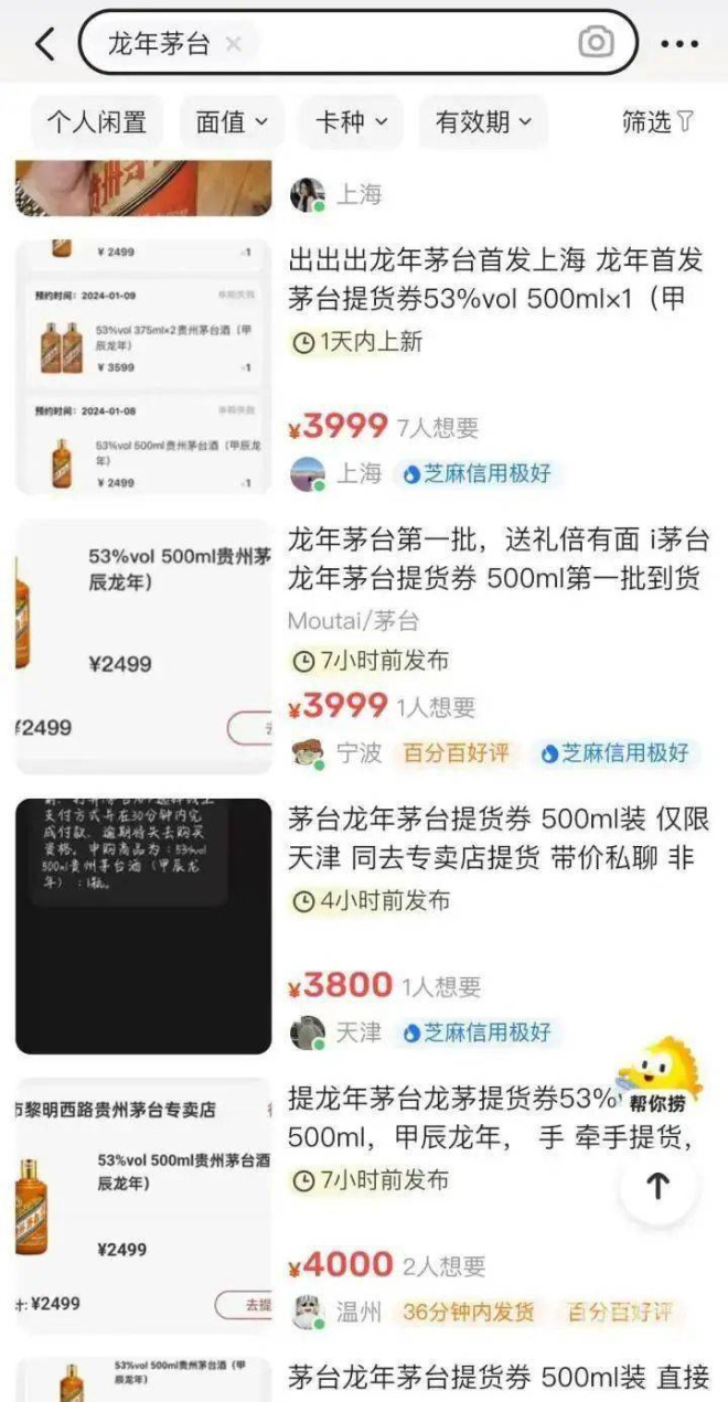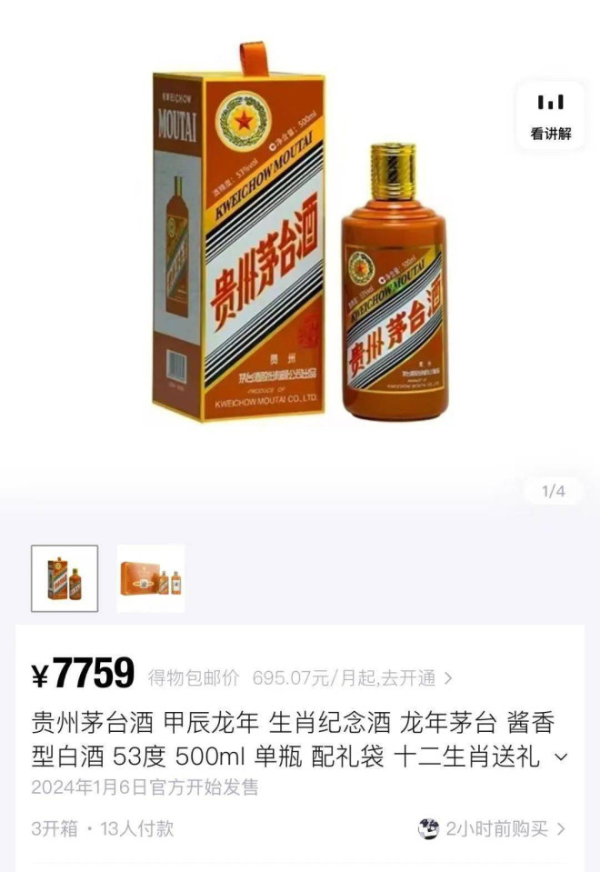 1月7日,龙年生肖茅台正式上架i茅台APP,发售价2499元/瓶,据此前报道,53%vol 500ml贵州茅台酒(甲辰龙年)申购结果公示,共计8589217人次申购,19475人申购成功,成功概率为0.2%,相当于一千个人只有两人可以抽中。 “龙茅”价格腰斩 近日,在第三方平台上,“龙茅”市场价为4349元/瓶,另一个闲置电商平台,卖家挂出的价格多在3800元—4000元/瓶,几近腰斩,此时距离正式发售仅过去了5天时间。 从批发价来看,“龙茅”批发价最高一度超6000元/瓶,目前已跌至3800元/瓶。“开盘价格虚高,很少有成交的。这个价格即便有客户要,我们也会劝退。”一位经销商告诉记者。 ![]() 事实上在这个阶段,经销商也不敢囤货,“跌得太快,烫手。另一方面,龙茅相较于兔茅发售量更大,未来价格或低于兔茅。” 他预测,“龙茅”价格将会继续下探,在春节前可以看到3200元/瓶。如果拿来收藏的,建议等到春节后。 ![]() 2023年初上市的“兔茅”同样发售即巅峰,市场价一度飙升至6000元/瓶,目前“兔茅”的批发价在3170元/瓶,“虎茅”、“牛茅”批发价分别为3530元/瓶和3460元/瓶。 ![]() 自2014年茅台推出第一款生肖酒以来,目前已有“马茅”“羊茅”“猴茅”“鸡茅”“狗茅”“猪茅”“鼠茅”“牛茅”“虎茅”“兔茅”“龙茅”十一款生肖酒面世。随着2025年“蛇茅”的上市,茅台的十二生肖酒便可成套集齐。 虽然同为茅台生肖酒,但由于供应量、生肖等因素,每款生肖酒的价格差别较大。贵州茅台第一款生肖酒“马茅”在上市之初,可能因未引起市场足够的重视,首发价只有849元。但由于当年的产量并不多,且是茅台首款生肖酒,“马茅”原箱单瓶的市场价格长期维持在万元以上。 贵州茅台的第二款生肖酒“羊茅”是目前价格最高的茅台生肖酒,单瓶价格维持在3万元以上。据悉,“羊茅”之所以价格高,除了年份久以外,主要是因为“马茅”在前一年的销量并不好,所以茅台在第二年就减少了“羊茅”供应量,而这也让“羊茅”成为茅台供应最紧俏的生肖酒。 2016年,茅台加大了“猴茅”的供应量,自此茅台生肖酒价格下降,目前“猴茅”在市场上的价格在5000元左右。 “鸡茅”“狗茅”“猪茅”“鼠茅”“牛茅”“虎茅”“兔茅”的价格整体呈现逐渐走低趋势,“兔茅”为目前最便宜的茅台生肖酒,近期随着“龙茅”上市,“兔茅”单瓶价格跌破3000元。 天猫平台上的经销商向记者表示,龙年生肖酒的价格走势最终由供需关系决定,此前“龙茅”刚上市之时,在尝新、收藏与投资市场走热,并且被市场中间商炒作,所以可能出现了价格的畸形。但随着“龙茅”供应量持续增加,供需关系得到缓解,价格自然回归正常水平。 “龙茅”申购 曾有平台加价超5000元 据小茅i茅台微信公众号(贵州茅台官方微信号)发布,1月6日,贵州茅台(甲辰龙年)生肖系列产品发布会在浙江良渚举行,共发布了贵州茅台酒(甲辰龙年)、茅台王子酒(甲辰龙年)、贵州大曲(甲辰龙年)。 1月6日19时,甲辰龙年茅台酒在i茅台数字营销平台正式开启申购。i茅台实名认证用户可进入活动页面进行申购。 记者在“i茅台”平台看到,53度500毫升规格的贵州茅台酒(甲辰龙年),单瓶零售价为2499元;53度375毫升规格的贵州茅台酒(甲辰龙年)采用每盒两瓶的包装,每盒零售价为3599元。 根据贵州茅台介绍,贵州茅台酒(甲辰龙年)是茅台推出的第十一款生肖系列产品,包装主色调为柘黄,瓶身绘有腾龙图案。贵州茅台表示,此次生肖系列产品发布选择在浙江良渚举行,是因良渚文化为中国大河文明的重要起点,且与酒文化、龙文化息息相关。 1月7日,贵州茅台酒公司公示了53%vol 500ml贵州茅台酒(甲辰龙年)申购结果。 数据显示,共有超过850万人次参与了申购,具体数字为8589217人次。 据悉,龙年茅台共开设两个申购渠道。第一,共有5010375人次通过i茅台“享约·茅台”渠道申购龙年茅台,申购成功9476人。这也是i茅台上龙年茅台的常规申购渠道。 第二,共有3578842人通过“玉兔辞旧,龙腾九霄”专场活动申购龙年茅台,其中9999人申购成功。 有媒体报道,目前第三方平台龙年茅台的价格已有3000元的加价幅度,报价为5499元/瓶。 ![]() 记者查阅另一第三方平台,显示龙年茅台报价为7759元/瓶,截至目前已有13人付款。 ![]() ![]() |