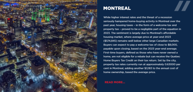 蒙特利尔 根据RE/MAX Canada的税收报告,2023年蒙特利尔的地税很少。 ![]() 首先,蒙特利尔的房屋市场相对实惠。在2023年年底,平均价格仍远低于多伦多和温哥华等其他大型加拿大市场($57.48万元)。 根据2023年年底的平均价格,买家只需在交房时支付近$8000元的欢迎税(welcome tax)。从未拥有过房屋的首次购房者不符合退税资格,但可以在报税时获得魁省首次购房者税收抵免。由城市设定的地税的税率目前约为每年0.63000%。 ![]() 蒙特利尔房地产市场物业转让税: