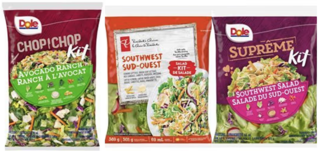 由于可能受到李斯特菌污染,加拿大各地正在召回更多的沙拉包。 加拿大食品检验局(CFIA)正在召回一款President’s Choice沙拉包和两款Dole沙拉包。 召回产品包括: