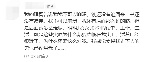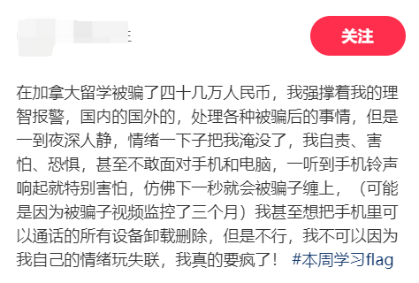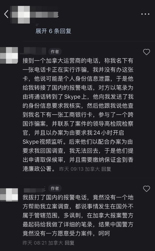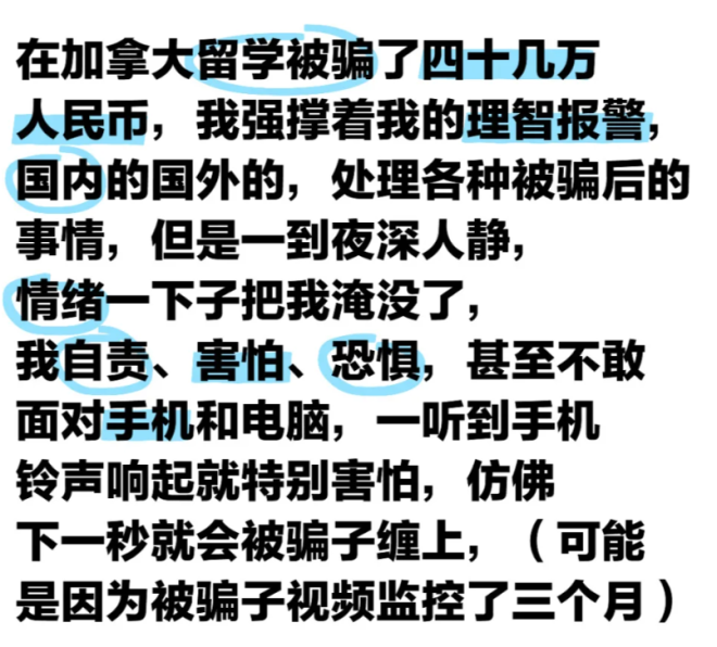 近日,社交媒体上一段醒目的文字看完令人十分揪心! 一位中国留学生自述,在加拿大被骗了40几万人民币,整个人都快要崩溃了! ![]() 图源:小红书 这位同学分享了被骗子监控、精神控制长达三个月的"人生噩梦",并写道:"我自责、害怕、恐惧,甚至不敢面对手机和电脑,一听到手机铃声响起就特别害怕,仿佛下一秒就会被骗子缠上..." ![]() 图源:小红书 "我不可以崩溃,我还有后面那么长的路,但是后面该怎么走呢?我感觉支撑我走下去的勇气,已经用光了..." ![]() 图源:小红书 这得多么无力多么绝望,才会写下这些话啊! 根据这位同学的描述,她所遇到的诈骗套路在许多人看来其实并"不算新鲜": 一个冒充加拿大运营商的电话,称她的名下有一张电话正在实行诈骗,声称可能是个人身份信息泄露,然后转接"国内报警电话"做笔录,接着进一步吓唬说她"参与跨国诈骗案",要求回国配合调查,无法回国就缴纳保证金...... ![]() 图源:小红书 听到这里,相信许多人都会对这个"熟悉的配方"嗤嗤一笑!因为加拿大的诈骗电话如今可谓是五花八门,有时每天都能接到好几个,许多人都已经习以为常了...但希望人们不要对诈骗受害者说一些风凉话泼冷水,制造更多伤害。 因为,实际上,许多刚来的华人,尤其是年龄比较小的留学生,人生地不熟的,根本不知道这些险恶路数的存在! 评论区就有大量网友表示自己有过类似的被骗经历,有人甚至损失几百万! "我朋友的弟弟也是被骗了几十万。这个骗局很多年了,但凡问问岁数大的都知道,以后遇到不懂的事情,一定要第一时间问大人。" ![]() "留学生很多被骗的,主要是没有身份,担心涉及到诈骗,被遣返没书念,之前看到有人被骗几百万。" ![]() "我也是,我上学那会被电话诈骗了30多万,吓得都不敢上学。“ ![]() "我差点被骗,骗子给我打视频电话,我在镜头前嚎啕大哭。得亏我啥事都第一时间告诉父母。" ![]() 值得提醒的是,现在的骗术层出不穷,招数也在不断与时俱进,大家还是要保持警惕!同时多多提醒周围的亲人和朋友,特别是一些平时不太常关注,新闻和社交媒体的亲友,防止更多人上当受骗! 同时也希望,不幸遭遇诈骗的朋友们,不要太自责,吃一堑长一智,赶快振作起来吧! |