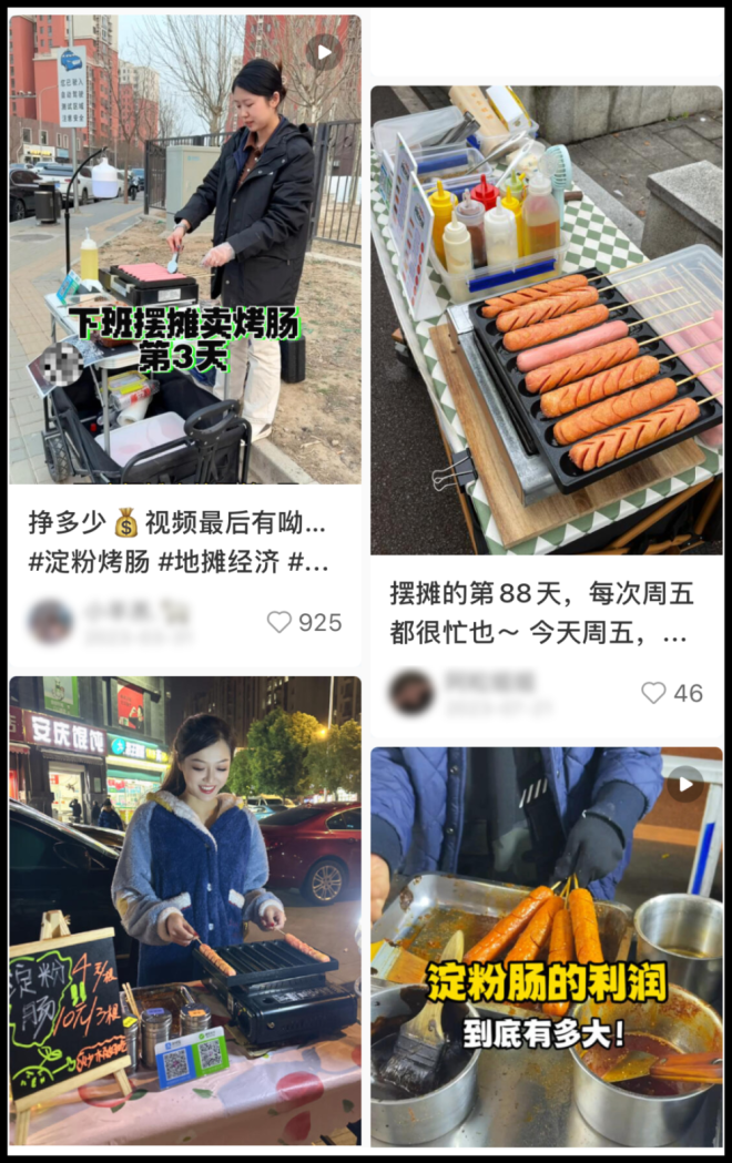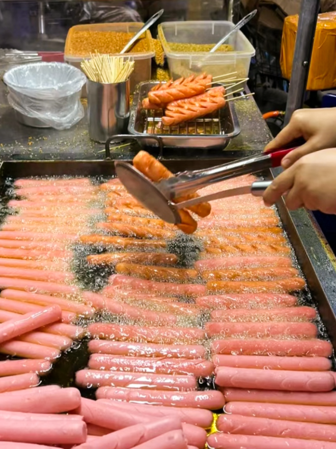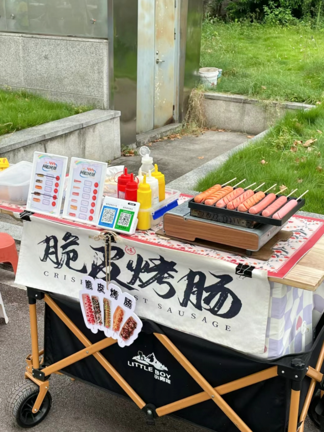 “怎么卖?” “31,52。” “啥?”“三块钱一根,五块钱两根。” 头也不抬地说出这套淀粉肠“行业黑话”的,是我面前的马尾娟(佚名),01年出生的吉林女孩,23岁。每天晚上5点后,你都能在沈阳彩电塔夜市,看见她一个人在小摊忙前忙后的身影。 一夜之间,我所在的城市多了很多淀粉肠小摊,大多都是马尾娟摊位的模样:露营用的手拉车、可折叠的不锈钢板当作台面、无纺布的彩旗招牌、一个可以同时烤八根淀粉肠的不锈钢托盘,凹槽的大小完美对应每一根淀粉肠,以及托盘下一个火焰正旺的卡式炉。马尾娟说这全套出摊装备,总价不到800元,是她原来月工资的三分之一。 ![]() “两种口味,鸡肉和淀粉的。来两根试试?”马尾娟看我犹豫,火速给我提供了选购建议。 尽管很多文章早已科普,大厂家生产的淀粉肠里其实并不全是科技和狠活,但从小被灌输路边的烤炸食品不健康,多少还是让我犹豫 —— 直到眼睛扫见几根烤肠在豆油的滋润下,散发出亮晶晶的光泽。美拉德效应下,提前改好的花刀的淀粉肠泛出轻微的金黄色,刀边轻微卷起,像花瓣一样娇俏。都说眼睛通大脑,大脑连肠胃,我几乎生理反应的咽了下口水, “那就来两根吧”。 整齐花刀的淀粉肠瞬间被满满撒上蘸料。趁热咬下一口,口腔立刻被五香粉和孜然填满,辣椒面和油香混合出一种只有在童年校门口才能遇见的香料气息,其实入口后根本分不清鸡肉和淀粉肠两者的区别,我还是一连吃了两根。 ![]() “再来两根吧”,不知道为何,两根外脆内软的烤肠下肚后我竟然有种怅然若失的空荡,只想继续满足那种久违的快乐。 ![]() “自己在家烤,总是烤黑。” 接过第二单的两根肠,我跟马尾娟唠起嗑来。 “要多放油!不然不是冒烟,就是烤糊。”马尾娟一边招呼目光瞟向自己的路人,一边大方磊落地跟我分享自己积攒的“烤肠秘诀”。 在一碗面都要十几二十块的时代,两根炸的表皮金黄带脆,内里粉嫩弹牙,还可以被特辣、麻辣、五香、烧烤、番茄、蜂蜜芥末、奶油……等灵魂蘸料所包裹的淀粉肠,只要不到5块钱,难怪一夜间成为了各大城市夜市和小摊的“流行食物”。 ![]() 不到五分钟,马尾娟的小摊已经陆续来了几对年轻女孩。马尾娟忙不迭地将淀粉肠的翻面,混杂的诱人香气开始弥漫,从下单选择口味,到拿到口味定制,也不过一分钟时间。这样金黄焦香的烤肠,大概是这条商业步行街上性价比最高,也最唾手可得的快乐。 “来两根吧,不。来四根吧!”两个女生忍不住喊了出来。马尾娟很有信心,在小摊面前停留超过10秒的人,无论男女,大多都会买走她的烤肠。 年轻帅气的马尾娟,是彩电塔夜市不多见的面庞。零下天气,一件宽大的黑色夹克,肉色的光腿神器,黑色马丁靴,在那些臃肿羽绒服的叫卖冰糖葫芦的摊主中显得格外抢眼。她从不大声吆喝,却会直接在摊位上摆架起蓝牙音箱,循环播放着凤凰传奇和告五人的曲子,脚下踩着“乌蒙山连着山外山,月光洒下了响水滩”的节奏,一边弯腰从一步远的脚边纸壳箱子里,拎起事先穿好竹签的淀粉肠。即便戴着一次性手套,也没有影响她给淀粉肠改花刀的灵巧:拨开外皮,迅速地在肠上各切六下。 她看起来并不像一个受生活所迫的摊主,更像音乐节刚出来的自在快活年轻人。要不是我好奇开口多问了几句,都不知道年纪轻轻的她其实已经失业了3个月。如此个性的打扮,也只是她告诉自己不要堕落,不要落魄的方法。当然,这也于无形中打败了隔壁被头巾包裹的严实,穿着厚棉袄,“主业手抓饼,副业淀粉肠”的大姨们。 ![]() “宝子来两串?鸡肉肠、淀粉肠,麻辣味孜然味的!” 一声声“宝子”喊得清脆分明,铁盘上的淀粉肠也裹上了几分年轻俏皮。 马尾娟是前年大学毕业的,因为不是什么名声响亮的大学,所以毕业后的选择有限,要么去广东做流水线工人,或者回家啃老。但二者她都不想,就决定来沈阳试试运气。沈阳是离她出生的小镇最近的大城市,来到沈阳后,她做过文员,跟过传媒公司拍摄,拿过的最高工资是每个月2500元。有回跟拍时从早上七点站到晚上十一点,马尾娟第一次知道了自己的腰在什么位置,“腰疼得第二天爬不起来,老板不听解释、上来就骂。” 一股气辞职后,马尾娟又陷入另一种恐慌:没钱怎么活下去? 抖音和小红书上的年轻人创业指南,马尾娟一眼看中摆摊卖淀粉肠,原因很简单:对于不擅长做饭的她,烤淀粉肠的门槛低到几乎没有。 ![]() 第一天摆摊,看起来和网上教程并无差别,却只赚到了35块钱。她准备了整整三十根,只卖出去不到一半,于是那晚的夜宵成了淀粉肠大餐。紧接着的一周,天天下雨,根本无法出摊的马尾娟躲在出租屋里,看着那一箱子上百根淀粉肠哭不出来,也吃不下饭。 “后来开了直播”,马尾娟开着手机,生意不好的时候就边卖肠边和网友聊天,大家在留言里零零散散给了各种建议,烤肠口味多了新的变化,慢慢生意好像也好起来。“挺一挺肯定能赚点钱,但谁能做烤肠吃一辈子。” 她说,“再挺一挺我就转行。” ![]() 转行,因为淀粉肠也是个江湖。 地铁口和小吃街,对我们普通消费者来说再普通不过的地方,对烤淀粉肠的摊主就是两个世界:地铁口的小摊可以独自修炼,商业街内就要参与厮杀。 所以小吃街上的炸肠摊,通常看起来也比马尾娟的兼职烤肠“豪气”很多,常见是用摊主姓氏作为名号,比如“某记炸肠”,或者干脆就叫“淀粉脆肠”