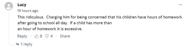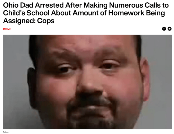 原来孩子作业过多,对父母也是一种折磨啊! 这不,就在不久前,俄亥俄州一孩子父亲,就因儿子作业过多而后开始发疯! ![]() 图片来源于insideedition,版权属于原作者 37岁的Adam Sizemore,是拥有一儿一女的单亲老爸。平时,下班后他都会像朋友一样和孩子们玩耍一番。 然而,最近他发现,儿子根本没时间陪他,更别说玩了。 只因儿子作业太多了,放学也还得继续写!! 2月29日这天,看儿子回家后依旧在埋头写作业。不忍心的单亲老爸Sizemore 却只能默默坐在一旁,苦闷喝酒。 三两杯酒下肚,喝高的Sizemore 顺手拿起手机就拨打起了校长的电话。 谁知,校长电话一直不通,心中不悦的Sizemore 便转移目标将电话打到了学校。 学校秘书一接通电话,Sizemore 劈头盖脸就是骂,斥责学校给儿子布置了太多作业,以至于没时间陪他。 而后,对着电话那头就开始不住抱怨,并威胁要搞掉学校秘书的工作。 ![]() 电话里,Sizemore说的话实在有点难听,学校秘书忍无可忍便挂断了电话。 下一秒,Sizemore 索命连环扣。 学校官员再次挂断! 重复了好几次“接挂电话游戏”后,学校官员耐心全无,警告Sizemore 再打来,会以电信骚扰的罪名起诉他。 哪知,这警告对Sizemore完全无效,电话轰炸照样进行。 ![]() 索命连环扣了一下午也没点进度,隔天Sizemore 再次拨打了学校的电话了,这次校长总算接了电话。 但听到Sizemore要求不让儿子做作业,并开始咒骂后,校长直接挂了电话,并拉黑。 这下,Sizemore 也毛了。 拼命的给当地警察局打电话,要求与警察局局长通话。 ![]() “他给调度中心打了电话,我想一个小时内就大概打了 18 次。” 在Sizemore的电话轰炸下,调度员始终拒绝让他与警察局局长直接沟通。 拉锯战下,Sizemore 失去了耐心。 而后开始破口大骂:“那他可以来我**的房子。我付钱给他。他可以来我家。” ![]() Sizemore 坚持不懈的骚扰最终让调度员妥协,而后派出了2名警察去到他家。 最终,Sizemore 因两项电信骚扰罪(一级轻罪)和一项威胁罪(四级轻罪)而被拘留。 ![]() 图片来源于nypost,版权属于原作者 当地警察局局长Adam Price表示,作为一所小学,孩子的作业量其实并不算太多。 反而是Sizemore的这种行为,极具破坏性。 Price 透露,如果Sizemore被判有罪,他将因每项电信骚扰罪而面临最高 1,000 美元的罚款和最高六个月的监禁; 因威胁罪,面临 250 美元的罚款和最多 30 天的监禁。 目前,Sizemore 已被释放,将在3月28日再次出庭。 ![]() 图片来源于Oxford Police,版权属于原作者 虽说... Sizemore 被控有罪,还可能做牢,但对于他的抗议行为,网友们大多却都表示理解,有些网友甚至还十分支持。 任何家庭作业都不应超过30分钟。 ![]() 太荒唐了。 他担心孩子上了一天学,还要做几个小时的家庭作业,居然还遭到指责。 如果孩子的作业超过1小时,那就太过分了。 ![]() 他因打电话和感到不安而被逮捕和指控。这似乎太过分了,这很可能侵犯了他的第一修正案权利。 ![]() 请让这家伙成为当今育儿问题的代言人。他之所以这么做,只是因为他和现在大多数人一样,想成为孩子的朋友,而不是父母。 ![]() 有哪个正常人会认为,12 岁的孩子花比父母更多的时间做作业是可以的?这些孩子每天要花 7 个小时在课堂上,然后还要花 2-3 个小时做作业。 ![]() 事实证明,小学生的注意力集中时间为 11 分钟。初中为 9 分钟,高中为 7 分钟。我已经教了 20 多年的书,在 50 分钟的课堂上,我平均指导 7-9 分钟,其余时间让学生进行当天的活动。20 年来,我从未布置过家庭作业。要么不做,要么忘了,要么在最后一刻才做。 我希望让孩子们在不上学的时候做孩子。 ![]() "芬兰的教育方式向世界展示,在家庭作业方面,少即是多"。 我的一年级学生有 1-2 个小时的家庭作业,这太疯狂了。 作为一名高中生,他回到家,进房间,出来吃晚饭,然后再次消失,去做作业(很大一部分是课堂上没有复习过的)。芬兰是如何做到课堂时间少、作业少,但标准化考试成绩却始终保持在较高水平的? ![]() 不过,也有网友认为学校没有问题,家庭作业很有必要。 学校布置大量家庭作业是有道理的。它能让初中生做好上高中的准备。而高中则是为大学做好准备。如果没有家庭作业,孩子们将无法做好准备,他们将在大学中挣扎。 这不是玩笑。这实际上是一件非常严肃的事情 ![]() 学校的课堂只能给你基础知识。 课外活动才是你出类拔萃的途径。 就像体育运动一样。 练习给你一个开始,但练习之外的表现才是你出类拔萃的关键。 抱怨作业太多对孩子没有任何帮助,只会让他/她变得不那么聪明... ![]() 当然,也有把矛头直指“卷的不能再卷的”亚裔父母。 而亚洲和印度的家长却在抱怨作业不够多。 看到区别了吧! ![]() 所以,大家觉得现在的孩子,作业多吗? |